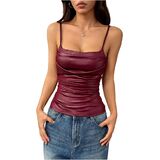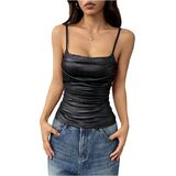 • Features: Faux leather, slim fitted, cropped, solid cami top for women
