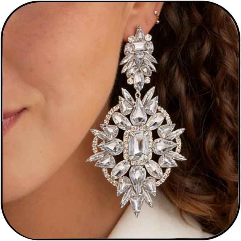 • Prom Earrings: Designed For All-Day Wear, The Smooth Hinge Of These Clip On Earrings Provide Secure, No-Pinch Comfort. Easily Adjust Tension To Your Liking For a Snug Yet Gentle Fit. These Oversized Crystals Frame Your Face Beautifully, Ensuring They Catch The Light And Attention From Every Angle.