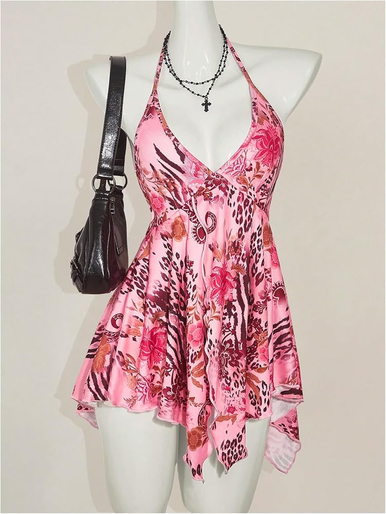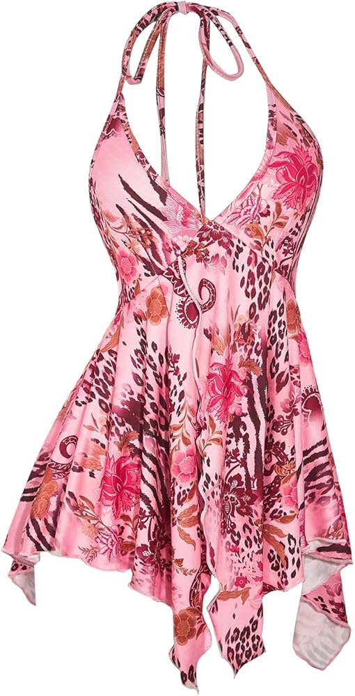 • Features: Deep v neck, paisley print, backless, sleeveless, ruffle hem, asymmetrical hem, y2k, boho halter tops, beach vacation clothes for women