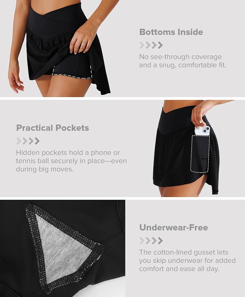 سراويل مدمجة مع جيوب مخفية: توفر السراويل القصيرة المدمجة تغطية كاملة وتبقى متحفظًا أثناء تحركك-تحافظ جيوب دافئة على هاتفك أو كرة التنس حتى أثناء التدريبات ذات التأثير العالي.