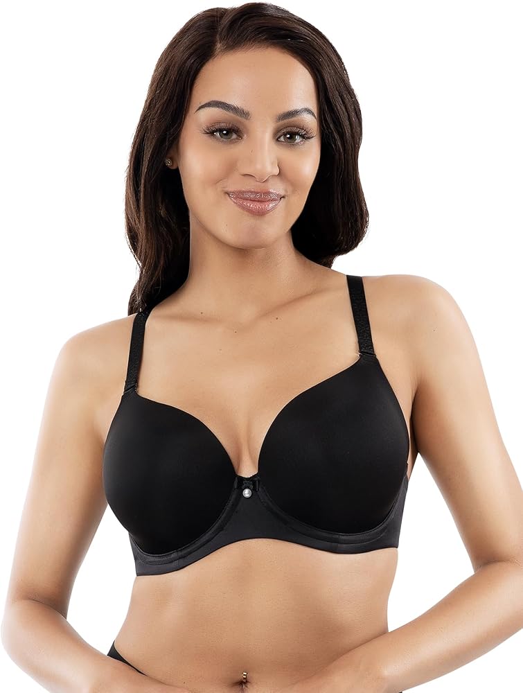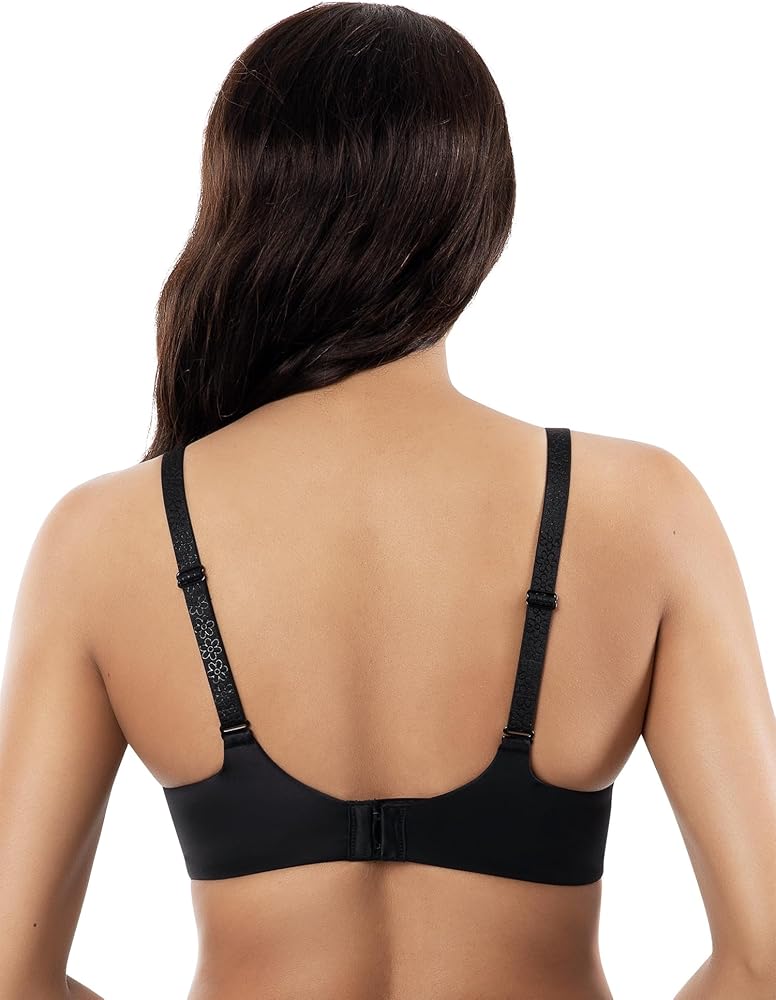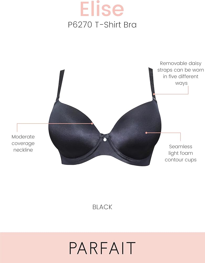 Elise is a seamless molded T-shirt bra that offers a perfect blend of comfort and elegance. Designed with seamless, light foam contour cups, it provides a smooth, natural silhouette. The lower neckline and daisy motif straps add a feminine touch, while the enclosed elastic back ensures all-day comfort. Ideal for full-figured women, it offers moderate coverage and versatile removable straps for a crossback option. This bra is your new go-to favorite for everyday wear, combining style and support effortlessly.