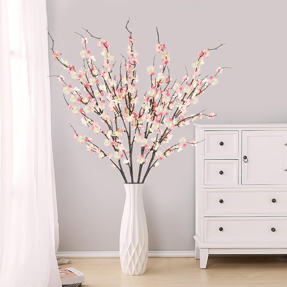 فروع زهر الكرز المزيفة: الزهور الاصطناعية الطويلة الجذعية التي تتميز بأسلاك حديدية في الداخل ، مما يسمح لها باللف في أي شكل ، مما يجعلها مثالية للتركيب في أي طاولة أو مزهرية أرضية