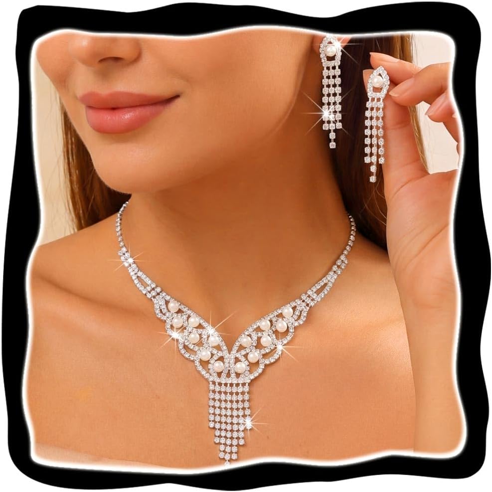 • قلادة الزفاف لحضور حفل زفاف مصنوع من حجر الراين واللؤلؤ , لها مجوهرات الحفلة الراقصة ذات نوعية جيدة ومريحة للارتداء.
