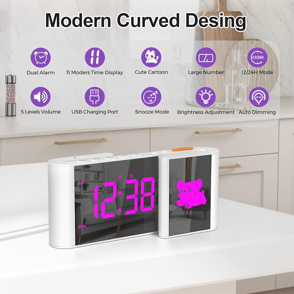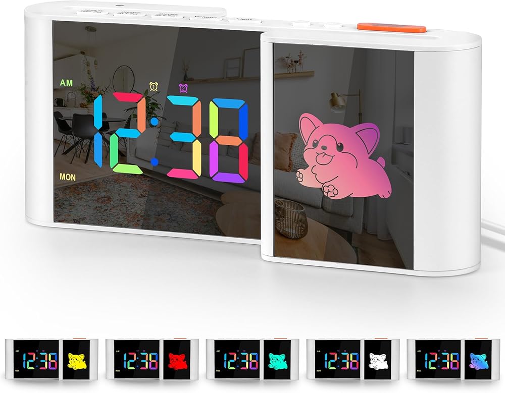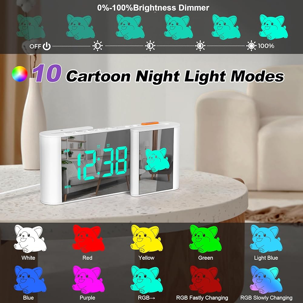 • 【تصميم كرتون لطيف حديث مع 10 ألوان RGB الضوء】 ساعة المنبه Szelam مع قطط أو كلب أو ديناصور كاريكاتوري وأنيق تصميم مرآة الشكل ، مثالي لمطاولة السرير ، غرفة النوم ، غرفة الألعاب أو الديكور في غرفة اللعبة ، مع 4 ألوان ديناميكية + 6 أوضاع كاريكاتورية ثابت كبار السن ، المراهقين ، الفتيات ، الأولاد ، الأطفال لموسم عيد الميلاد أو عيد الميلاد