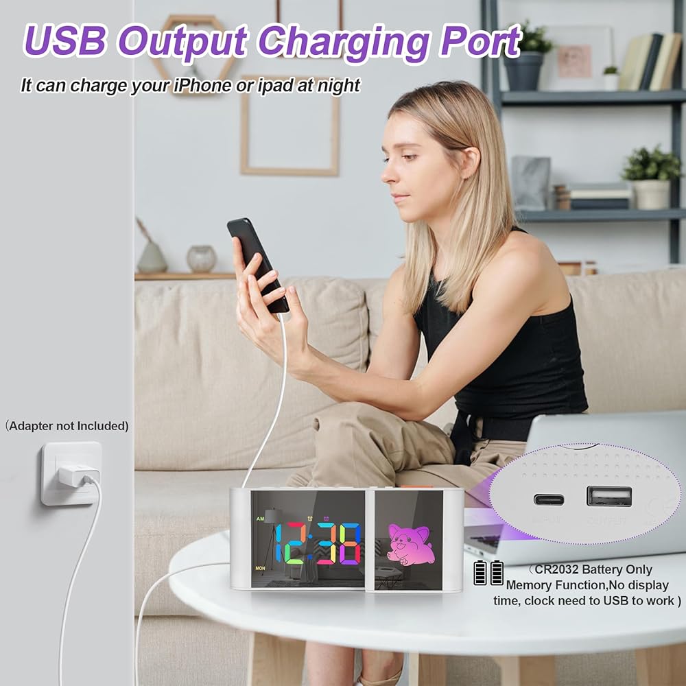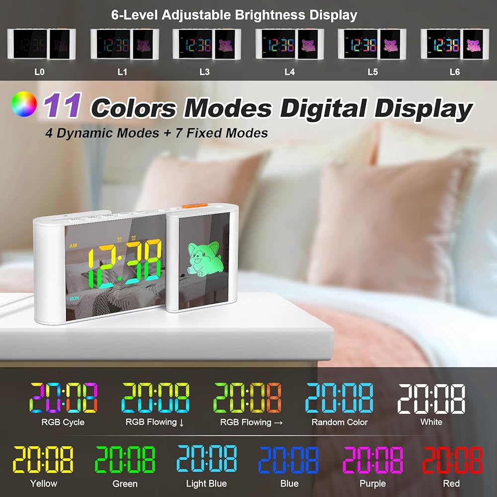 • 【11 ألوان RGB رقمية و 6 مستويات من السطوع】- يحتوي المنبه الرقمي على شاشة رقمية LED المتغيرة مع 4 ألوان RGB ديناميكية + 7 أوضاع ملونة ثابتة ، يوفر لك تجربة مرئية مختلفة ويمكنك اختيار لون الخط المفضل لديك. وتتيح لك ضبط سطوع الشاشة من 0 إلى 100 ٪