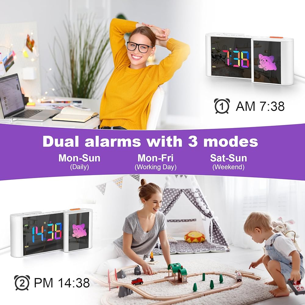• 【إنذار مزدوج مع 3 أوضاع وساعة عرض الأسبوع】 الإنذارات المزدوجة مع ثلاث أوضاع إنذار ، يمكنك ضبط وضع العمل اليومي/عطلة نهاية الأسبوع/العمل على المنبه. مع 3 أوضاع مختلفة يمكن أن تضع العمل أو المدارس أو وقت الراحة لأطفالك أو لنفسك في نفس الوقت.