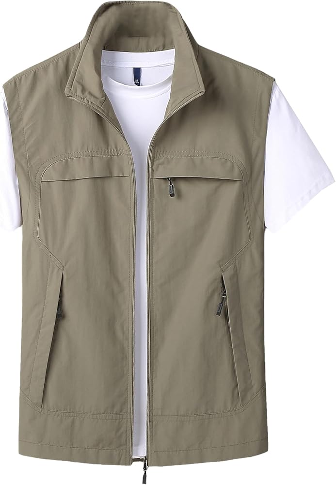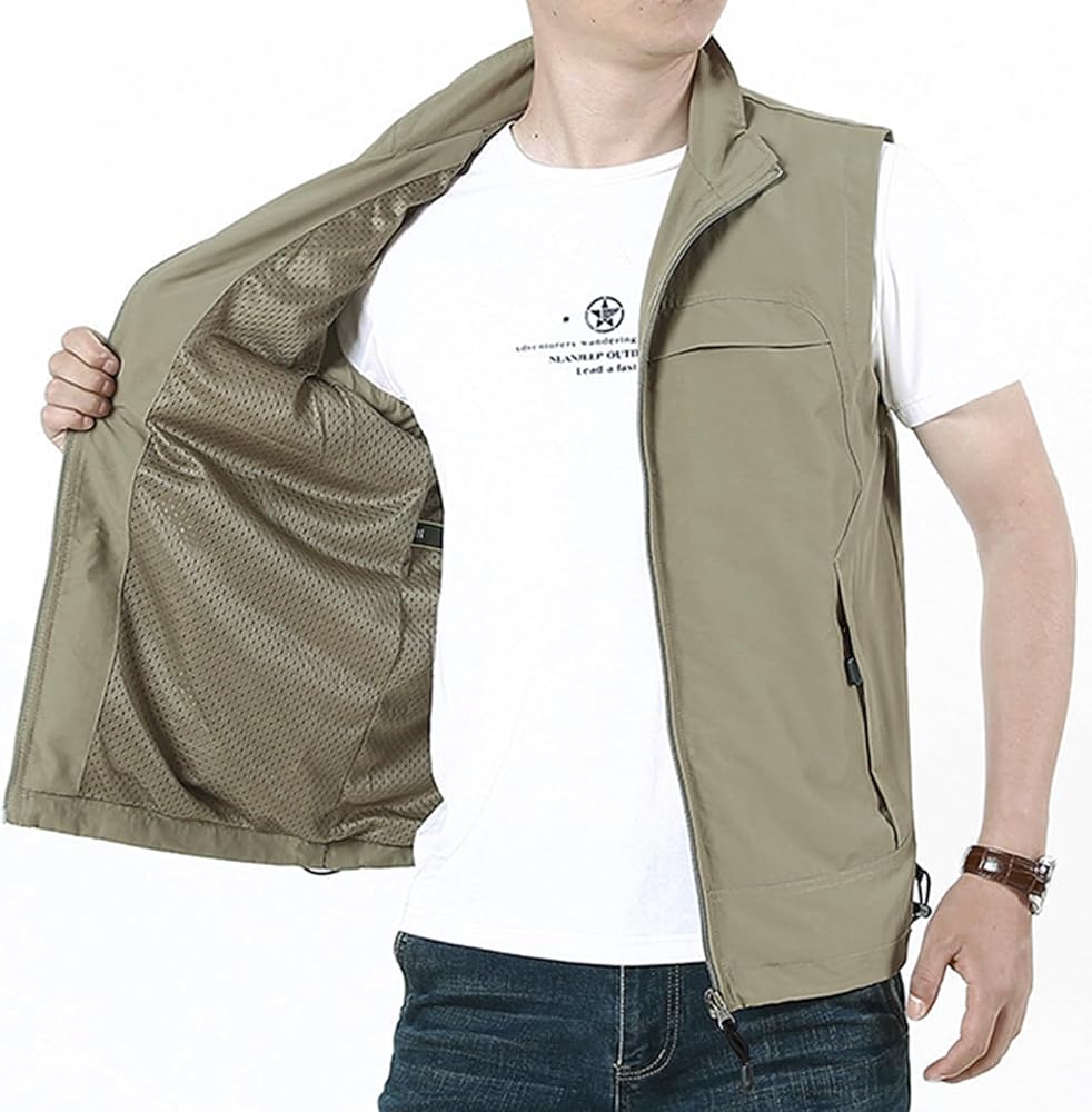 - سترة الصيد الصيفية الصيفية مع جيوب متعددة ، 2024 الصيف zip up سترة بلا أكمام لتشغيل المشي لمسافات طويلة.