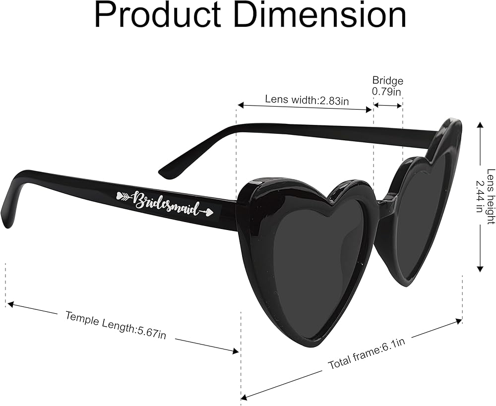 تصميم على شكل قلب: تم تصميم هذه النظارات الشمسية المواتية لحفلات العازبة بشكل خاص مع إطارات على شكل قلب ، مما يجعلك أنت وصيفات الشرف تبدو أكثر جاذبية وجمالًا ، وبالتأكيد ضربة في حفلة العازبة.