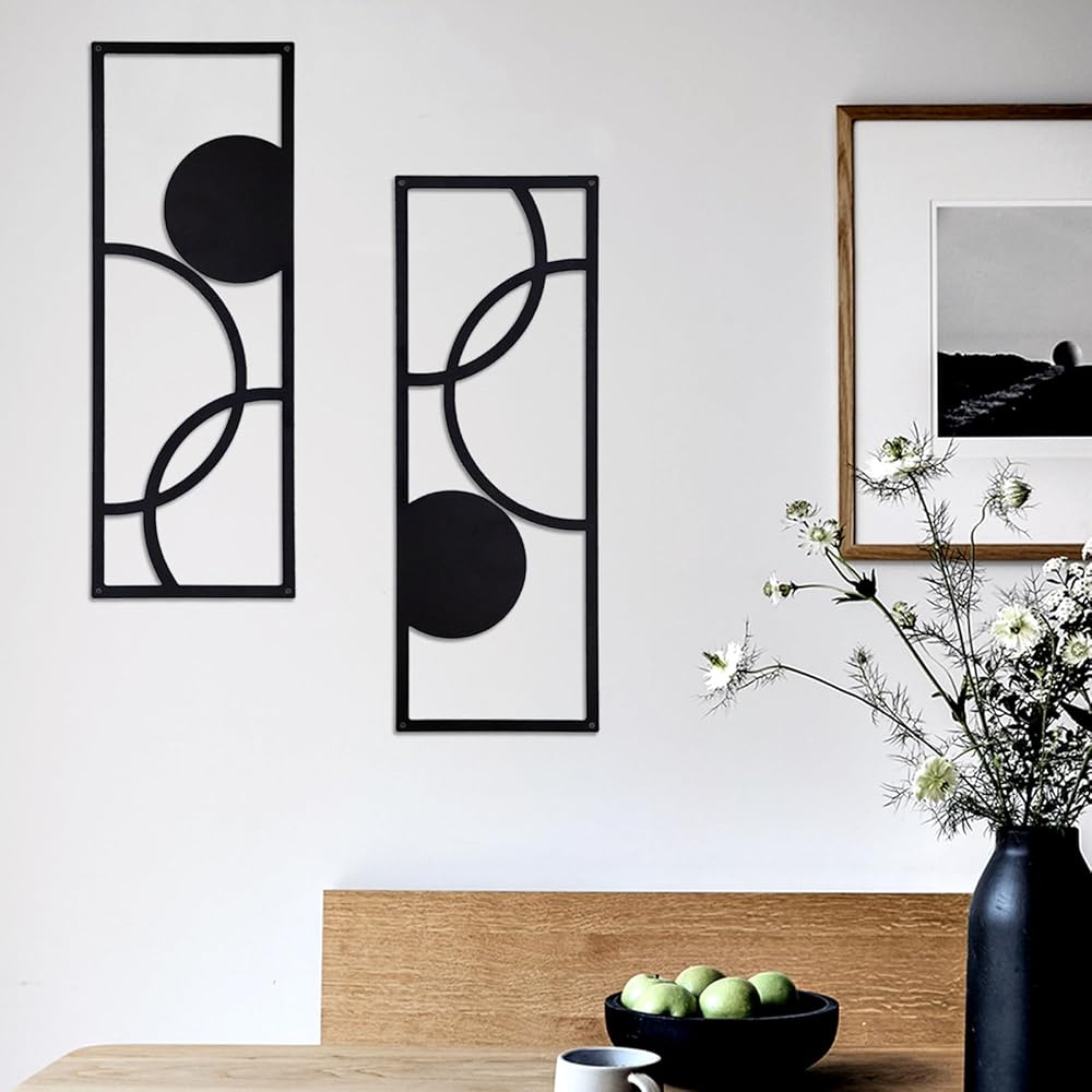 Tylcc Black Metal Wall Decor Modern Artract Minimalist Fexteric Aosthetic Wall Art For Bedroom Room Decorts-2 PCS (Simple-1-Large)