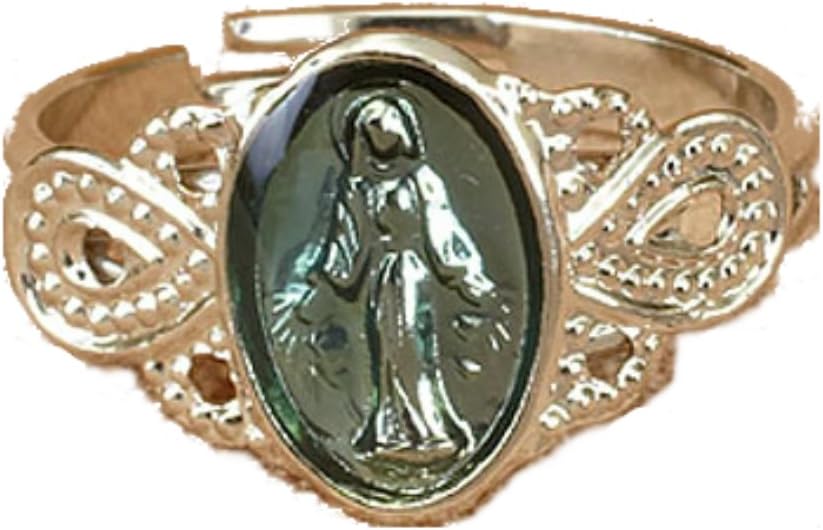 صورة جميلة من المينا الزرقاء لأم المباركة على حلقة فضية اللون قابلة للتعديل. رائعة لأي فتاة صغيرة - أو يمكن أن يرتديها الكبار كخاتم وردي