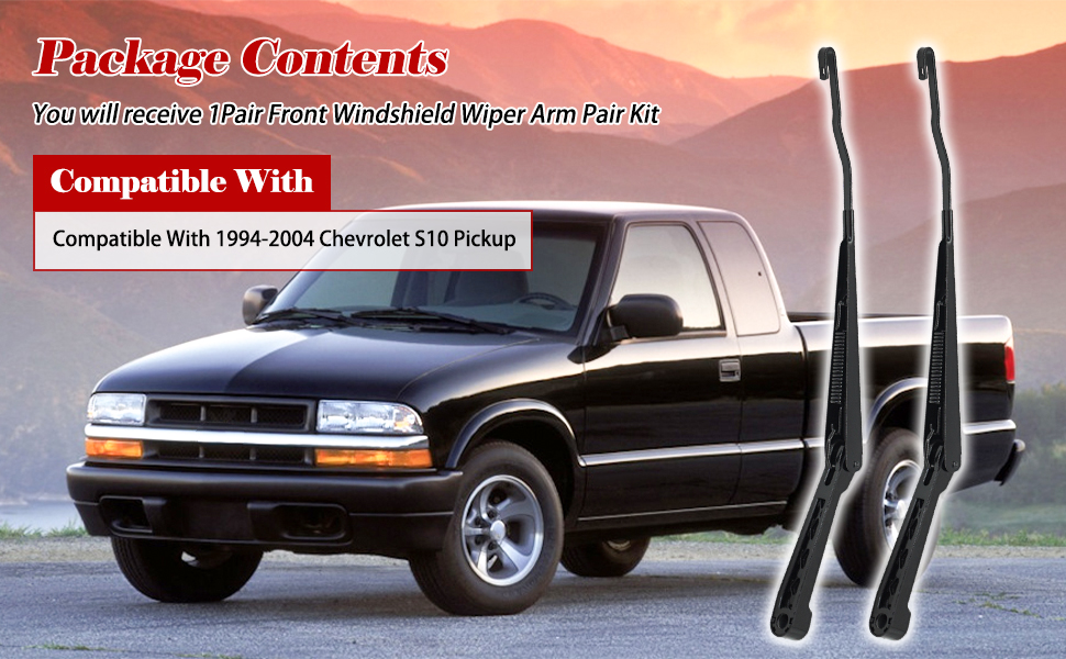 1 زوج بديل للمساحات الزجاجية الأمامية بديل أذرع ممسحة متوافقة مع 1994-2004 Chevrolet S10 Pickup (الأمام الأيسر + الأمامي اليمين) ، استبدل # W0182-V316273