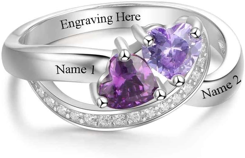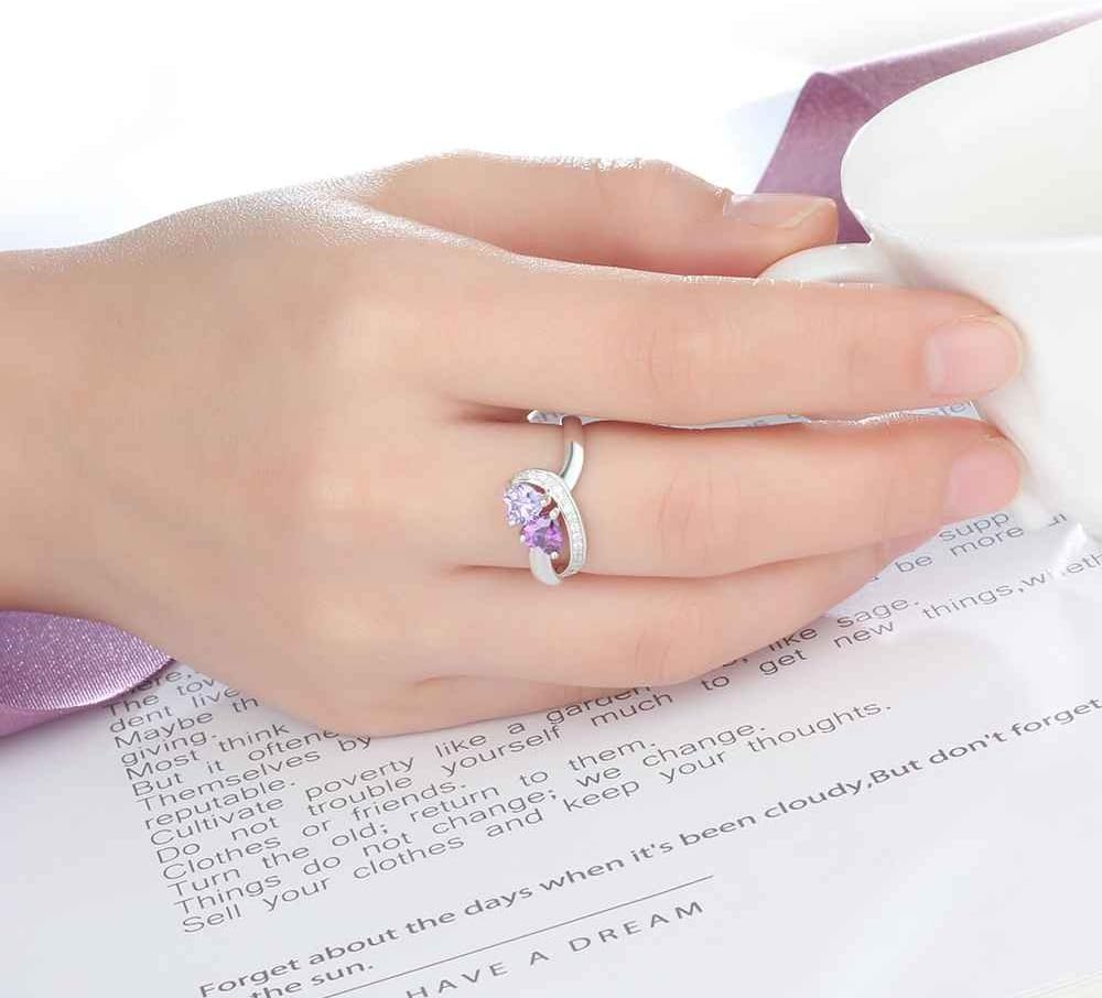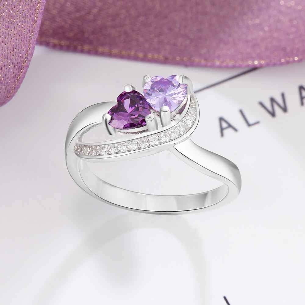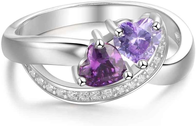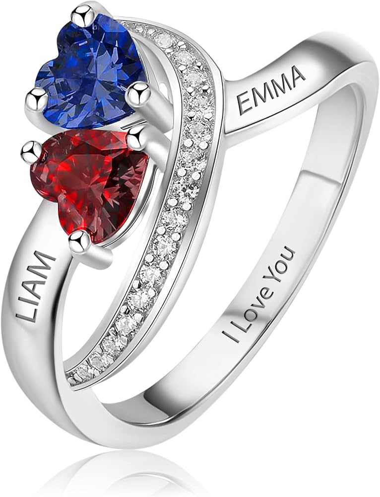 This GLAMCARAT Sterling Silver Ring with shining finish is an eloquent accessory that will become a memorable piece to commemorate any occasion. Suitable for mothers, fiancés, sisters, daughters and any other special woman in your life, this promise ring with gemstones makes an exclusive gift. It can carefully hold two heart-shaped birthstones alongside the engraved names to symbolize your special bond and togetherness. Engrave a special message on the inside for a heartfelt touch. The timeless 925 solid sterling silver ring is polished to achieve an exquisite sheen and make a harmonious balance with the colored gemstones. Finely crafted with excellent quality sterling silver, the dual gemstone ring comes with a gift box to keep it safe, ready for the perfect presentation!