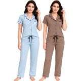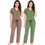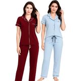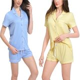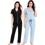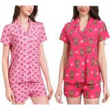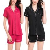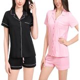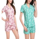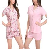 • 2-Pack Cute Pajama Sets with Notched Collar: Each set includes two stylish short sleeve tops with notched collars and a chest pocket. These button down designs offer a relaxed fit and versatile look for sleep or casual wear.