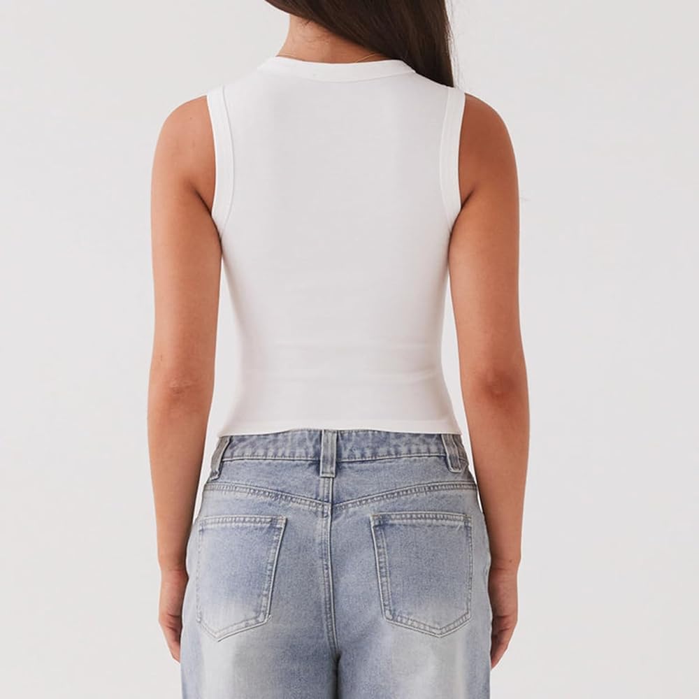 Women Button down Tank Tops Casual Summer Solid Color Sleeveless Crop Shirt Basic Vest Aesthetic Clothes for Streetwear