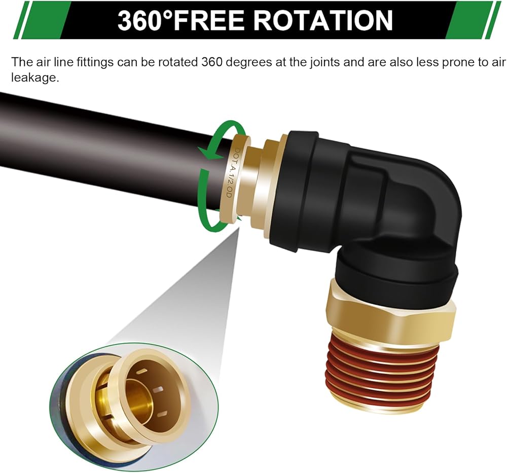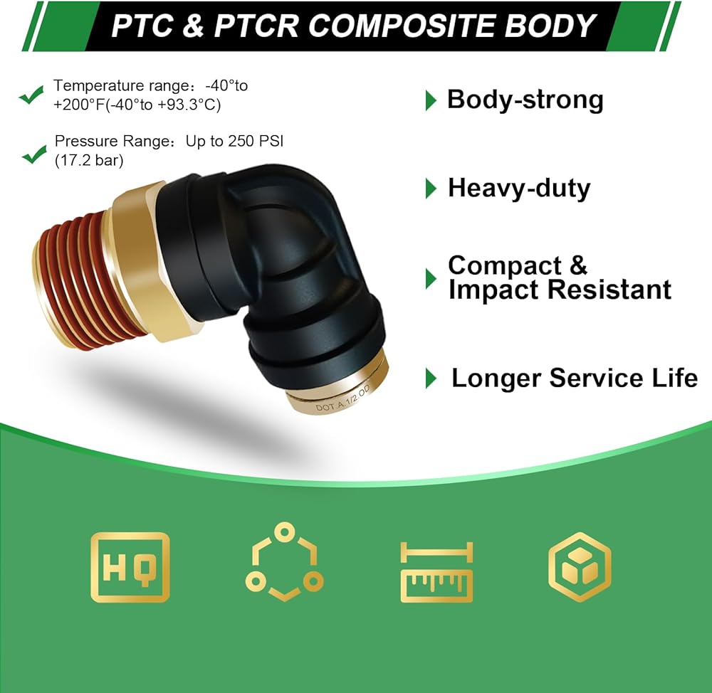 ستحصل على هذه: 3 أجهزة كمبيوتر 1/2 "تجهيزات الفرامل الهوائية المرفقة ، PTC/PTCR & BRASS 1/2" Tube OD X 1/2 NPT Connect Connect Hose Hose Modtings for Truck Trainers Industry Air System