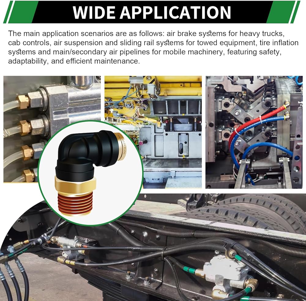 تطبيق واسع : إن سيناريوهات التطبيق الرئيسية 1/2 "Tube OD X 1/2" NPT Connect Connect Connect Connect هي على النحو التالي: أنظمة فرامل الهواء للشاحنات ، وضوابط الكابينة ، والتعليق الهوائي ، وأنظمة السكك الحديدية المنزلق للمعدات المسحورة ، وأنظمة تضخم الإطارات وأنابيب الهواء الثانوية/الثانوية للآلات المتنقلة ، وتتميز بالسلامة ، والصيانة الفعالة.