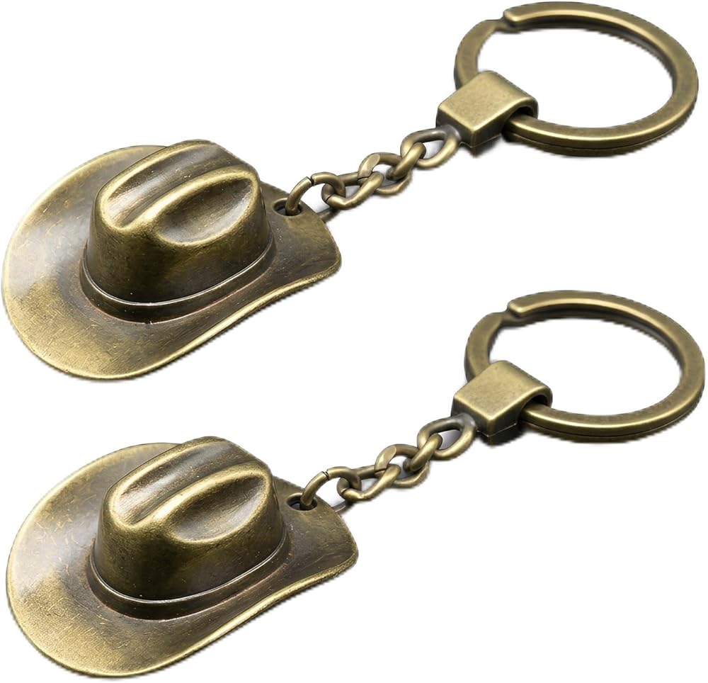 Material:The western keychain made of high quality vintage bronze zinc alloy loop clip, high-quality alloys and plating,rust proof, non-toxic,high hardness fun cowboy hat keychain accessories, gold key ring for keychains
