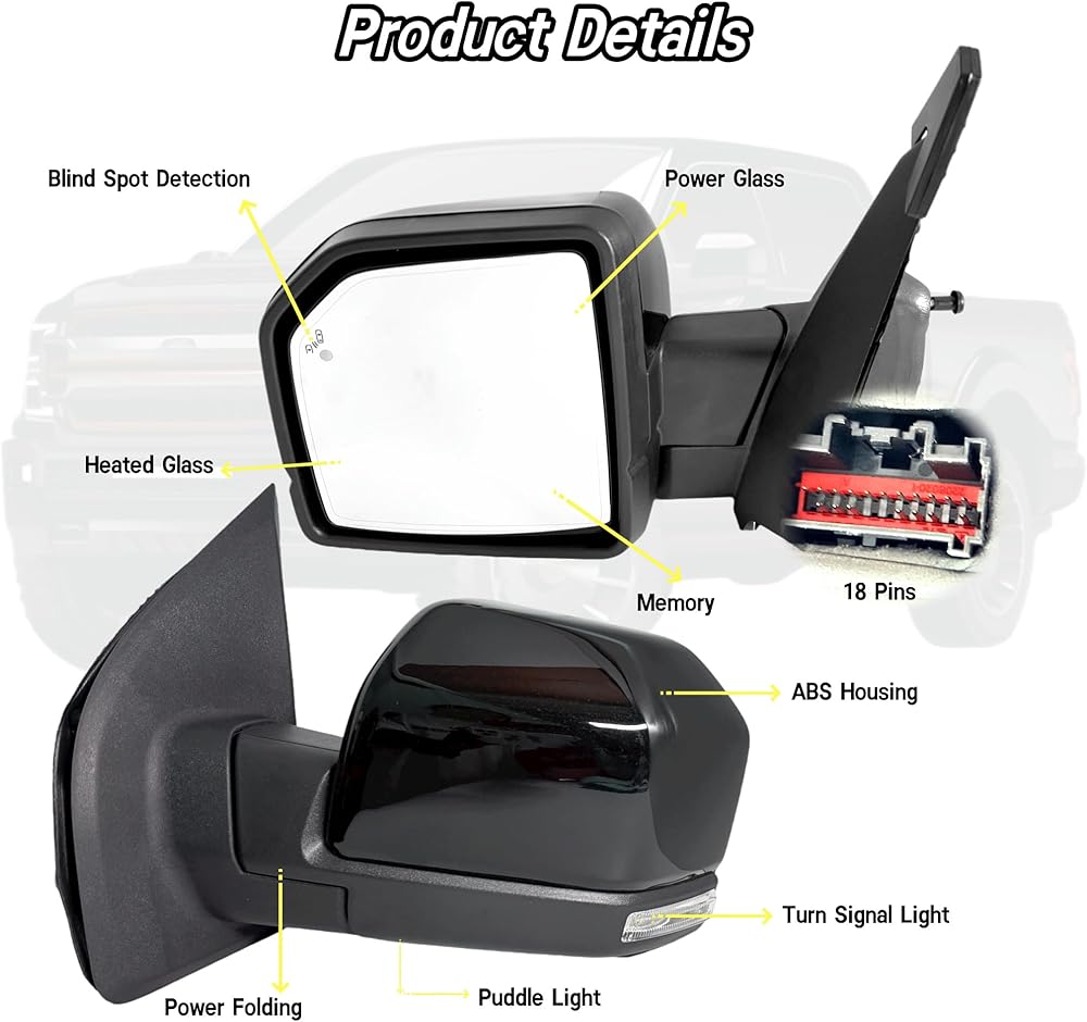 - 【تناسب النموذج : : هذه المرآة الجانبية للركاب متوافقة مع 2015 2016 2017 2018 2019 2020 فورد F-150 16 دبابيس