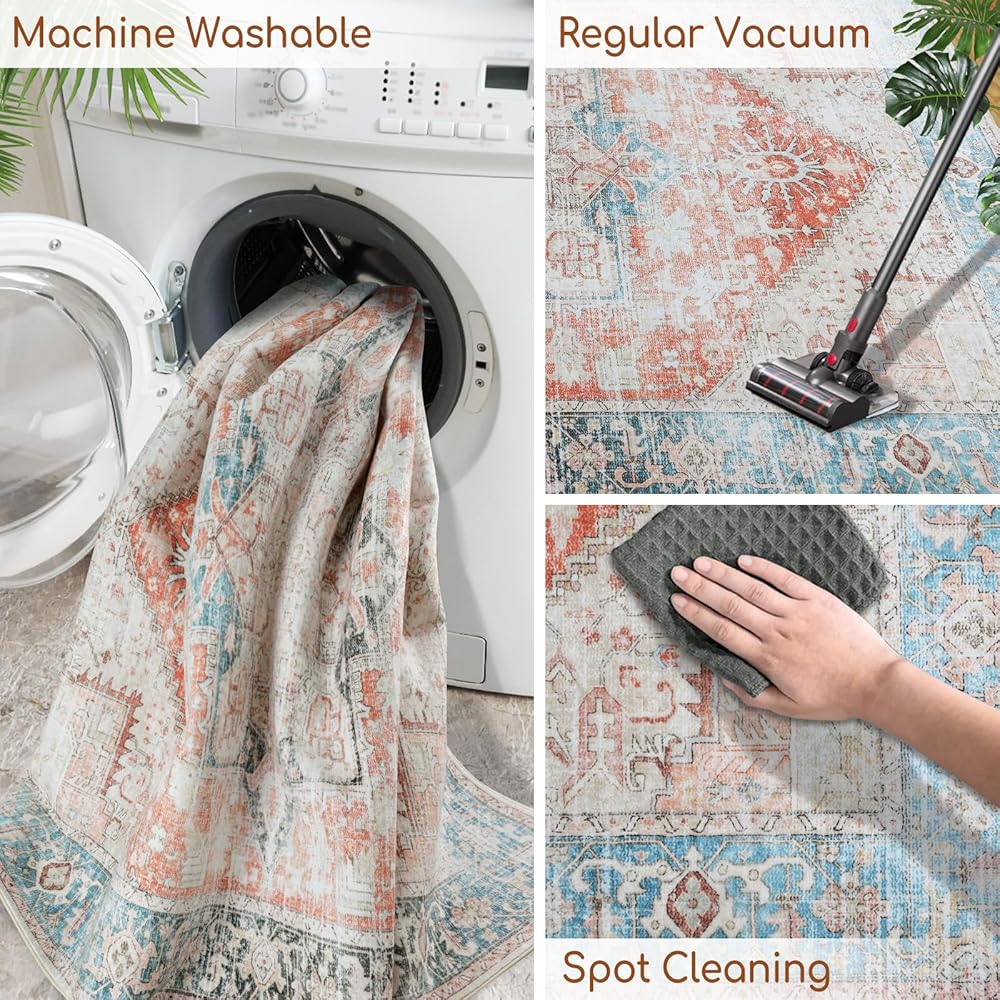 • ❤ [قابلة للغسل الماكينة] - يمكن غسل السجادة القديمة في الماكينة أو تفريغها أو مكنسة أو خرقة تنظيفها. قد يتجعد أغلفة طية البساط مؤقتًا ، فمن المستحسن لف السجادة في الاتجاه المعاكس لإعطاء التجاعيد وقتًا للتسطيح والتعيين
