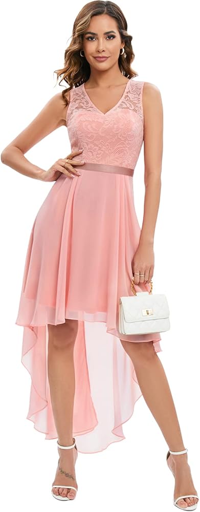 【خفيفة الوزن وناعمة】 فساتين ضيوف الزفاف النسائية من الدانتيل مصنوعة من نسيج الدانتيل القابل للتمدد، وحاشية من الشيفون، مع بطانة ناعمة وسحاب خلفي مخفي. مسامي ومريح، هذا الفستان الأنيق ذو الارتفاع المنخفض سيعانق جسدك تمامًا ويظهر الرومانسية والأنوثة