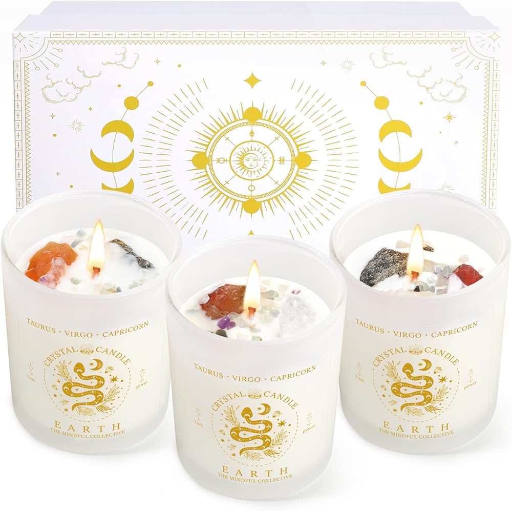 3 Pcs Crystal Candle, Crystals and Healing Stones Crystal Zodiac Candle, Spiritual Birthday Gifts for Women