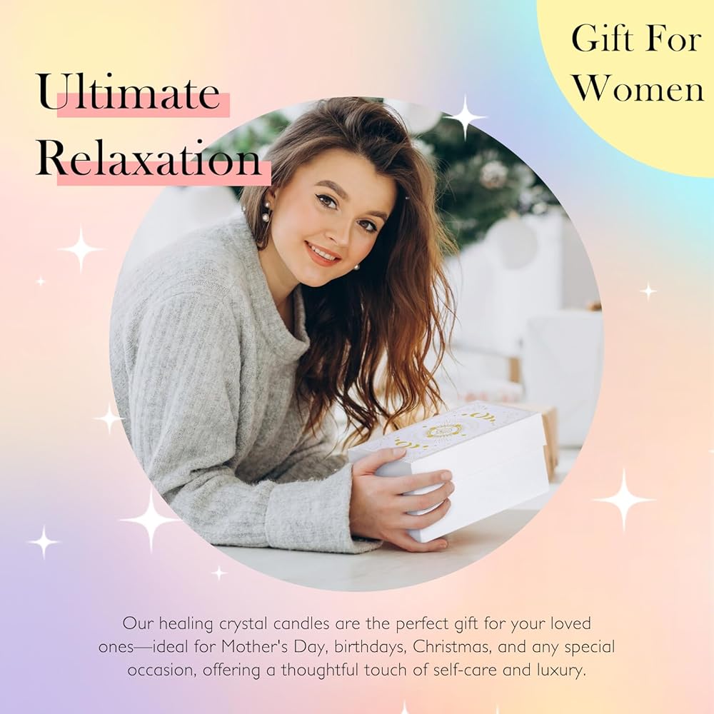 Healing Crystal Aromatherapy Candle Gifts: Looking for a gift that's both thoughtful and magical? Our crystal-infused aromatherapy candles are the perfect way to add a little zen and sparkle to your loved one's life. Whether it's for Christmas, Valentine's Day, Mother's Day, Thanksgiving, an anniversary, or a birthday—these candles are sure to light up her world (literally and figuratively). Ideal for women, moms, sisters, girlfriends, and wives who deserve a little luxury and relaxation.