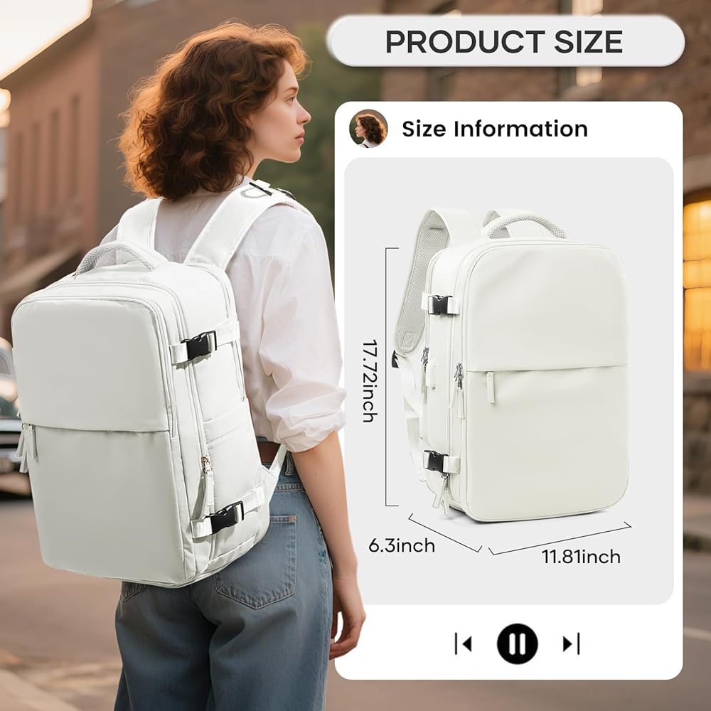 Flight Approval: Size 11.41 * 7.48 * 17.32 inches (L * W * H), 180 degree zipper closure, can help you quickly pass through security check. Meets the portable requirements of airlines and can be easily placed in overhead storage racks and under seats on the aircraft. The luggage strap on the back allows the vacuum backpack travel to safely slide past any rolling luggage handle, making it convenient for hands-free transportation and easier to carry.