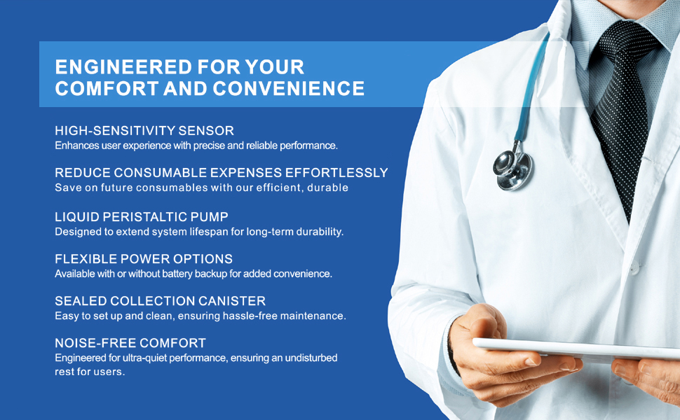 لضمان الأداء الأمثل والسلامة ، يرجى الالتزام بفواصل الاستبدال التالية للمكونات الرئيسية: أنابيب الشفط: استبدال كل 2-3 أسابيع ، قسطرة خارجية: استبدال كل 7-10 أيام ، حاوية جمع: استبدال كل 4-6 أسابيع