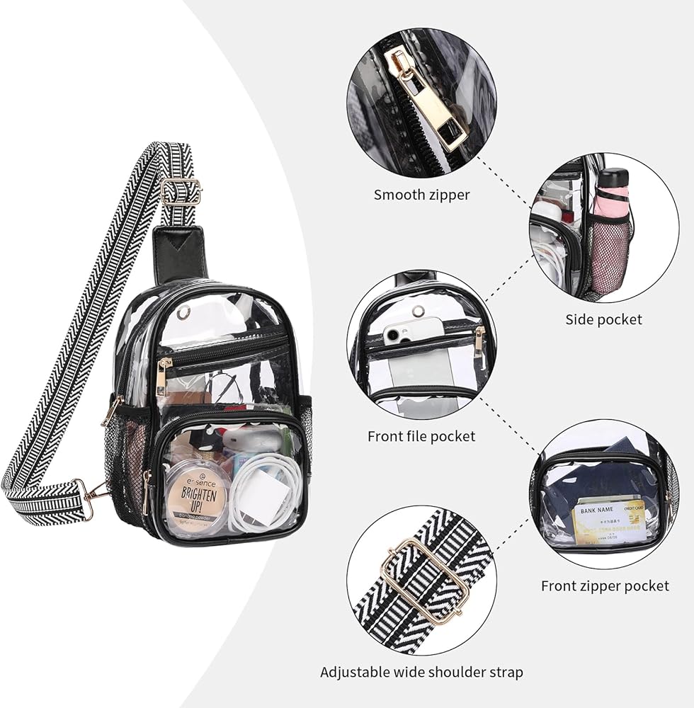• خيارات حمل متعددة الاستخدامات: تأتي هذه الحقيبة الواضحة للنساء مع حزام كتف قابل للتعديل يمكن ضبطه من 25.6 بوصة إلى 47.1 بوصة ، مما يتيح لك ارتدائها كمحفظة حبال متقاطعة ، أو حقيبة حبال ، أو كيس متقاطع ، أو كيس كتف صغير متقاطع