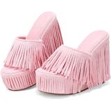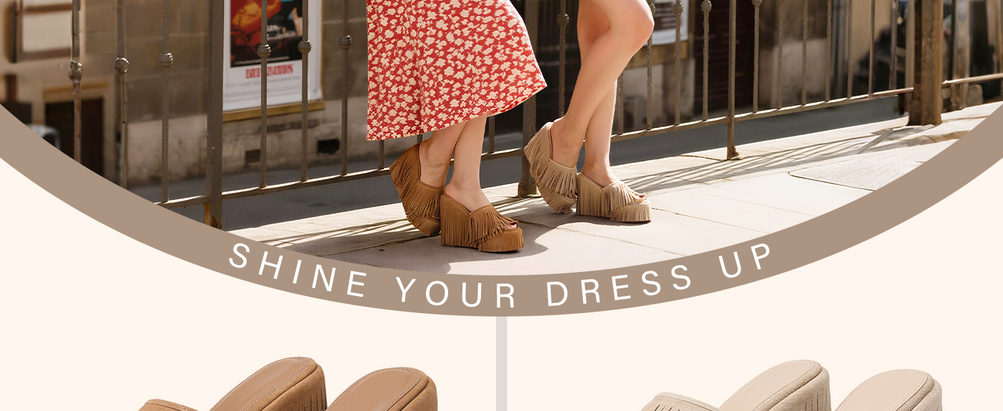 [صندل الشرابة المذهل]: تسيطر الشرابات المشرقة والمتدنية مع كل خطوة ، حيث تضخ طاقة ديناميكية في المظهر العام وتصبح بسهولة مركز الاهتمام في الحشد.