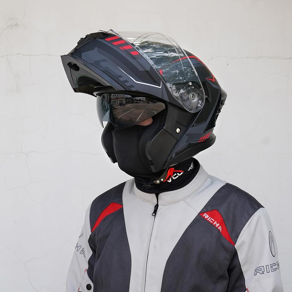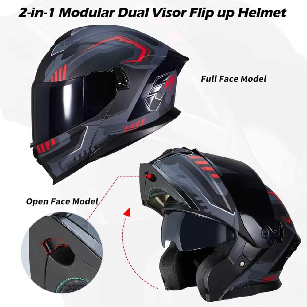 MXJ Gear Motorcycle Helmet — Motorcycle Helmet,Motorcycle Dual Visor Flip up Modular Full Face Helmet JR-815,DOT Approved Motorbike Helmet with 2 Visors for Adults Men Women