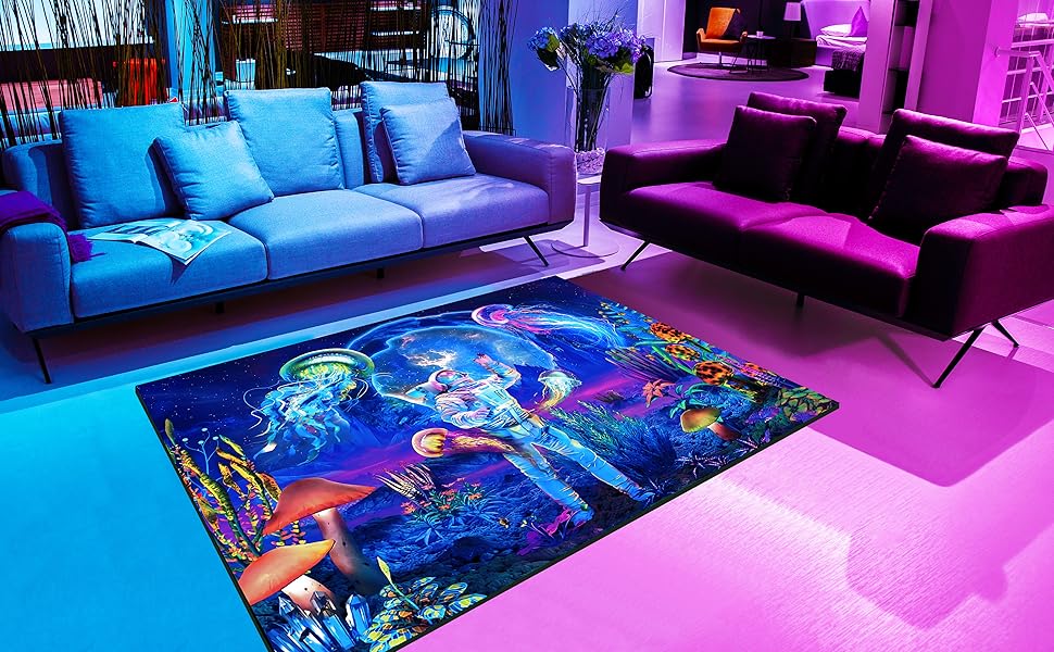 سجادة منطقة فضاء Blacklight ، سجادة كبيرة للأشعة فوق البنفسجية للأشعة فوق البنفسجية ، سجادة مضيئة غير مضيئة ، توهج في النباتات المظلمة قناديل البحر ديكور غرفة نوم الفضاء 70 × 47 بوصة