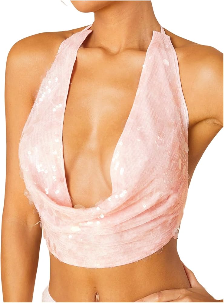 - Features: Contrast sequin, glitter, sleeveless, backless, cropped tank tops for women