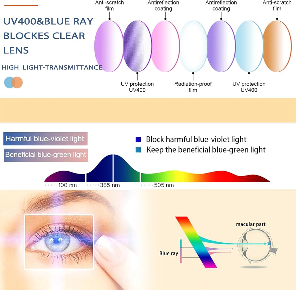 عدسة مضادة للضوء الأزرق : نظارات قراءة الكمبيوتر Joschoo استمتع بوقتك الرقمي. يقلل من إجهاد العين وعدم الراحة الناتجة عن فترات طويلة من القراءة والشاشة الرقمية وألعاب الكمبيوتر والعمل تحت أضواء الفلورسنت.