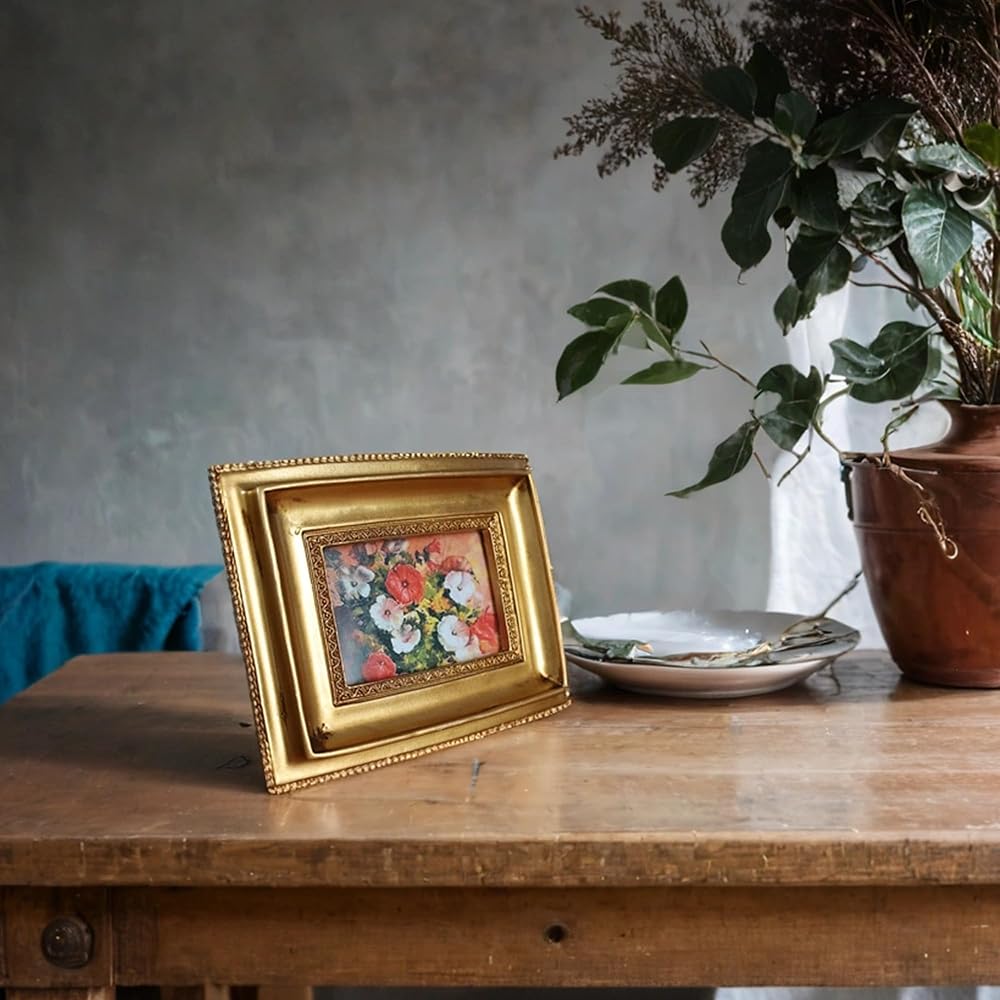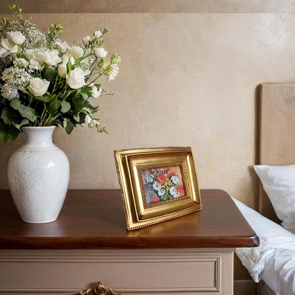 البناء عالي الجودة: يتم استخدام راتنج عالي الجودة لتقليد تفاصيل الزهور المنحوتة ، مقترنة بزجاج عالي الوضوح. على عكس بدائل ديكور المنازل البلاستيكية ، تطور هذه الإطارات الواقعية مع مرور الوقت ، مما يعزز جاذبية الديكور الفيكتوري.