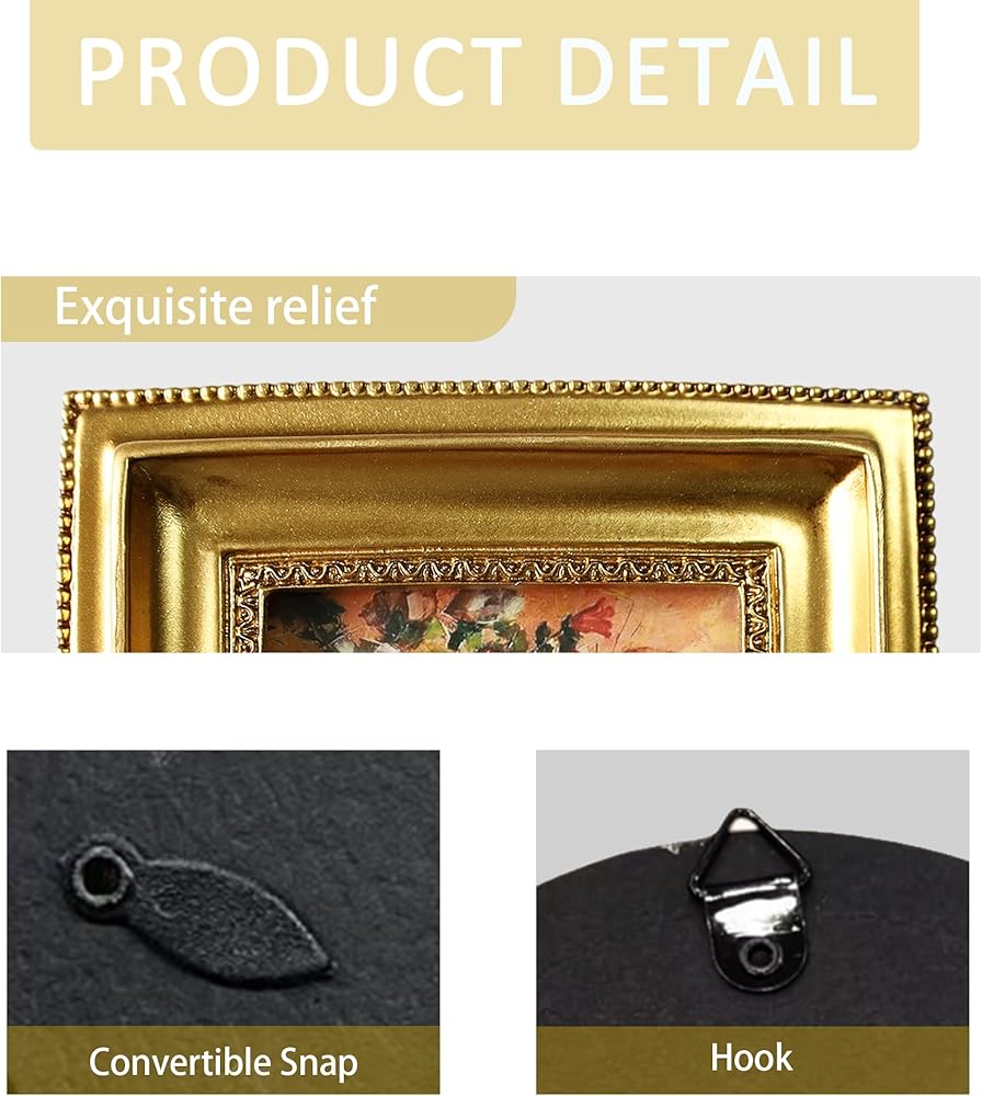 تصميم عتيق رائع: مصنوع من تقنيات إطارات الصور المزخرفة ، تتميز إطارات صور الراتنجات بأسلوب عتيق. تحافظ الجبهة الزجاجية عالية الدقة على حيوية الصور الأصلية مع الحماية من الأضرار البيئية.