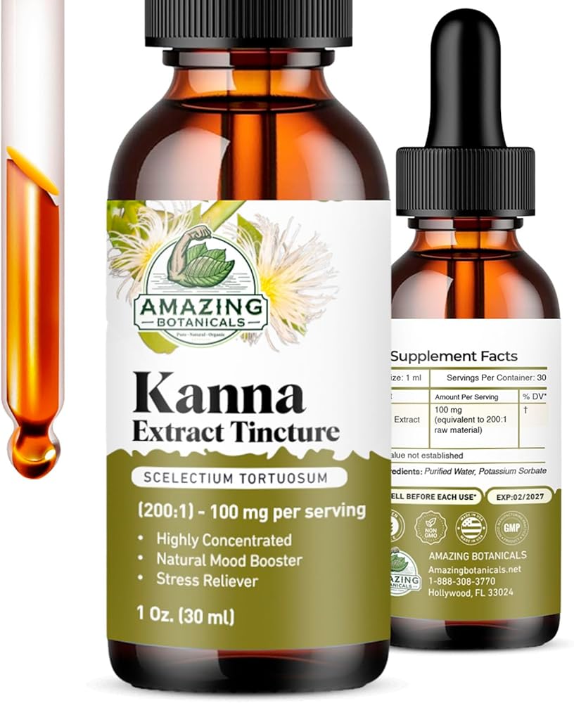 Discover the natural benefits of Amazing Botanicals 200x Sceletium Tortuosum Extract Tincture. Each 30ml bottle contains a powerful 200X concentration of Sceletium Tortuosum, providing 150,000 mg of this traditional herb known for its mood-enhancing and relaxing properties.