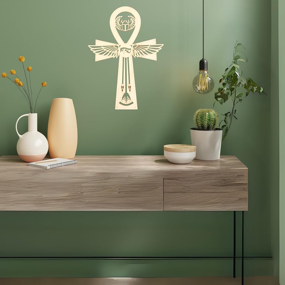 رمز مقدس - هذا الديكور الجدار الهامسا المنحوتة بشكل معقد يجسد الانسجام الروحي ، ومزج التصوف المصري ومشاعر زن البوذية. رمز باطني معروف باعتباره تعويذة وقائية ضد الطاقة السلبية.