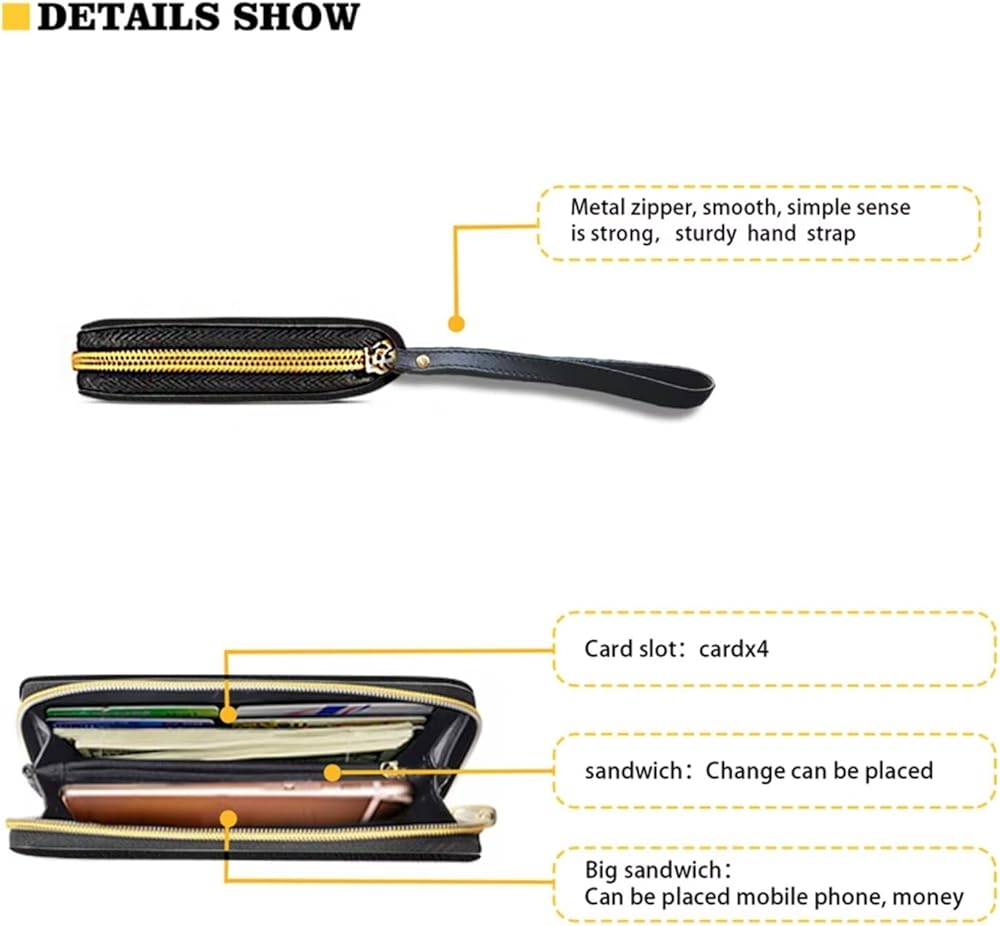 The wallet is made of PU Leather. 4 card slots, 1 zipper sandwich, 1 small interlayer, 2 big interlayer design makes the wallet multi-functional. The wrist strap is convenient for you to hold it steadily.
