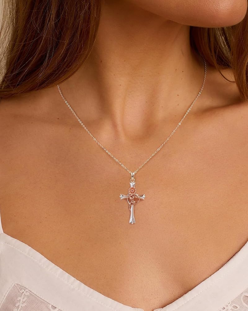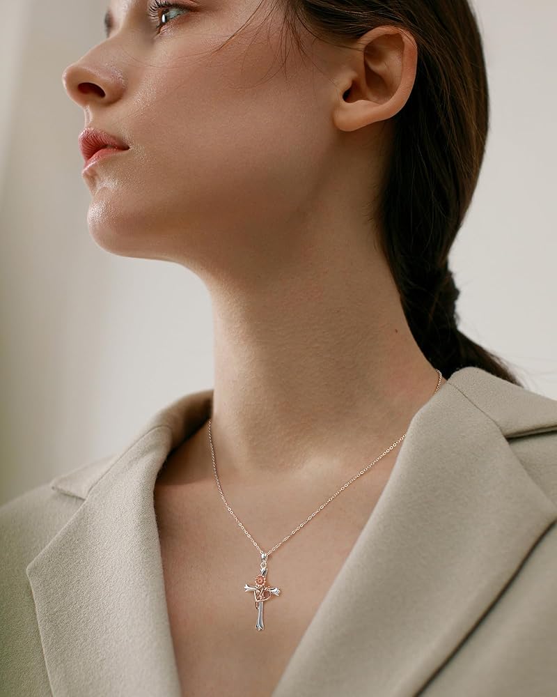 إلهام التصميم: ترمز الوردة إلى الحب الأبدي الذي يتجاوز الوقت. تحتفل قلادة الصليب اللطيفة ذات النغمة ذات اللونين غير القابلة للكسر-المثالية للعشاق أو الأصدقاء أو الأمهات/البنات. ارتدِ قلادة فضية ذات مغزى بالقرب من قلبك
