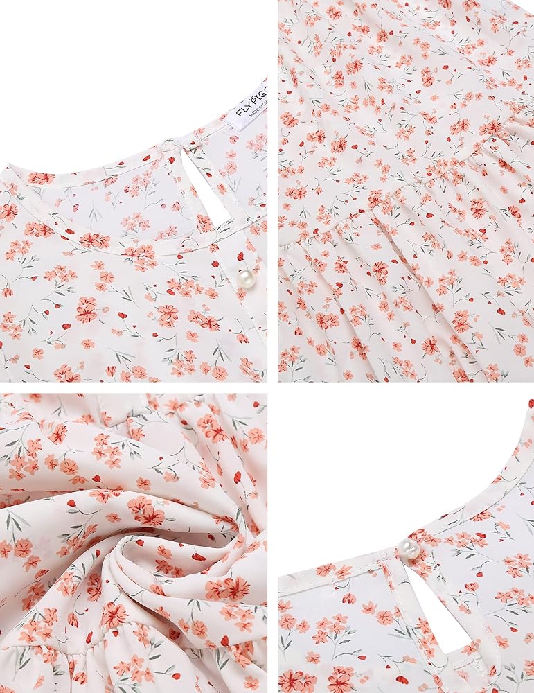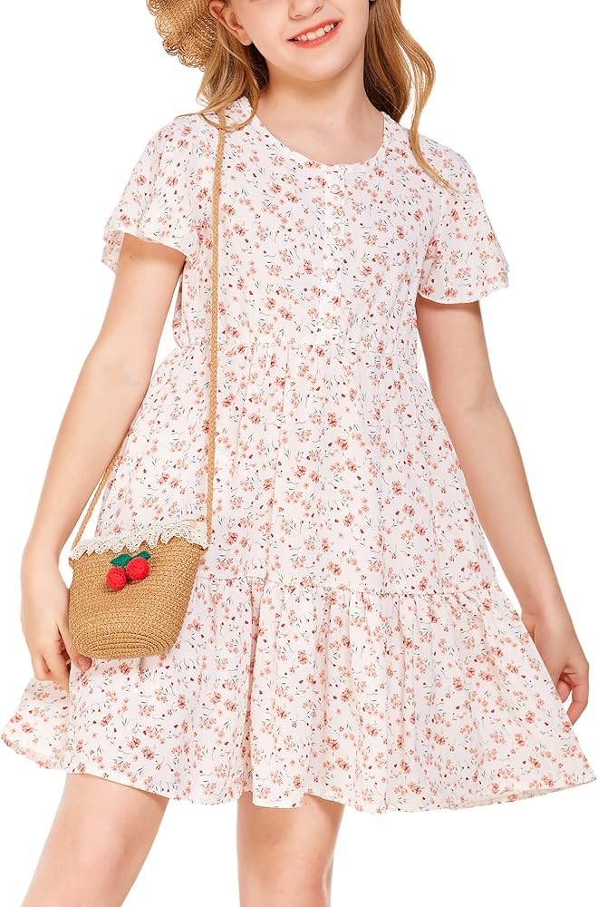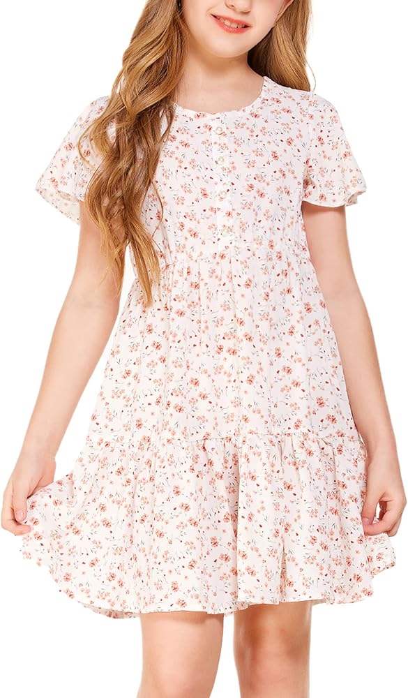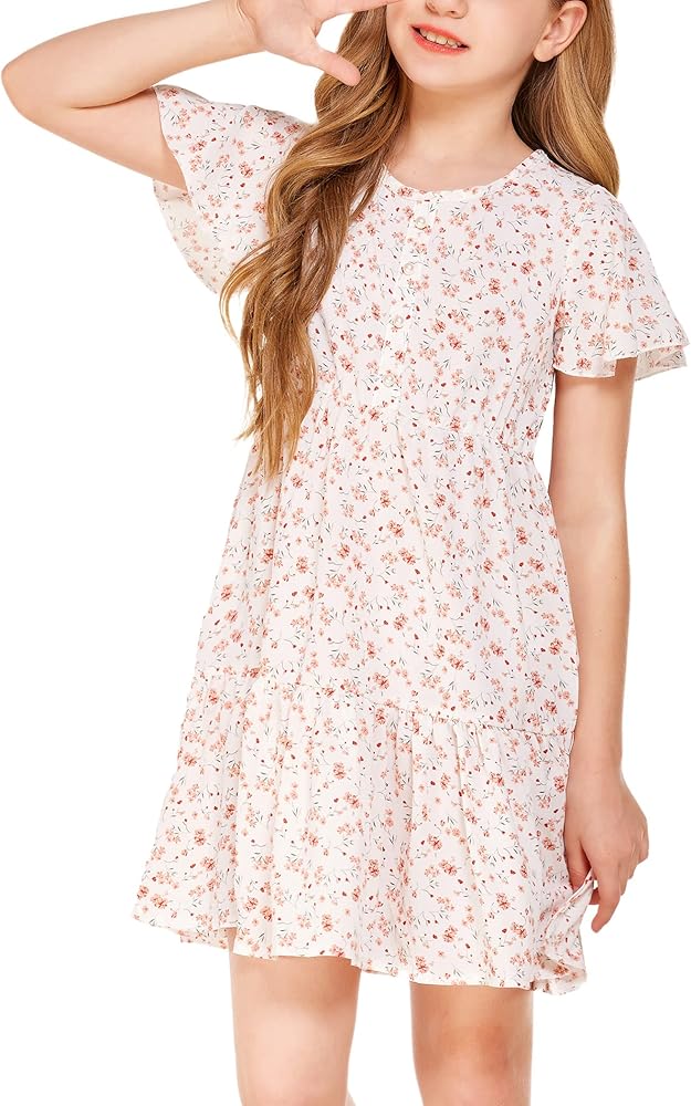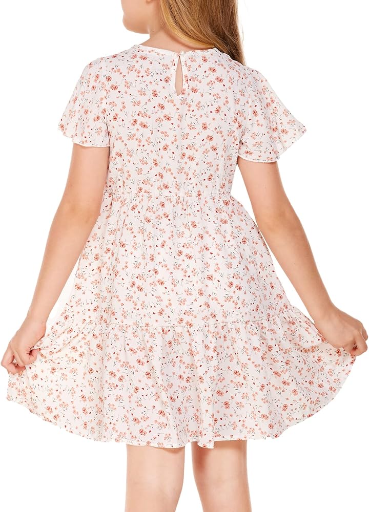 فستان Flypigs للفتيات مزين بالزهور وأكمام مكشكشة فستان صيفي كاجوال فضفاض لعمر 3-12 سنة