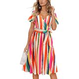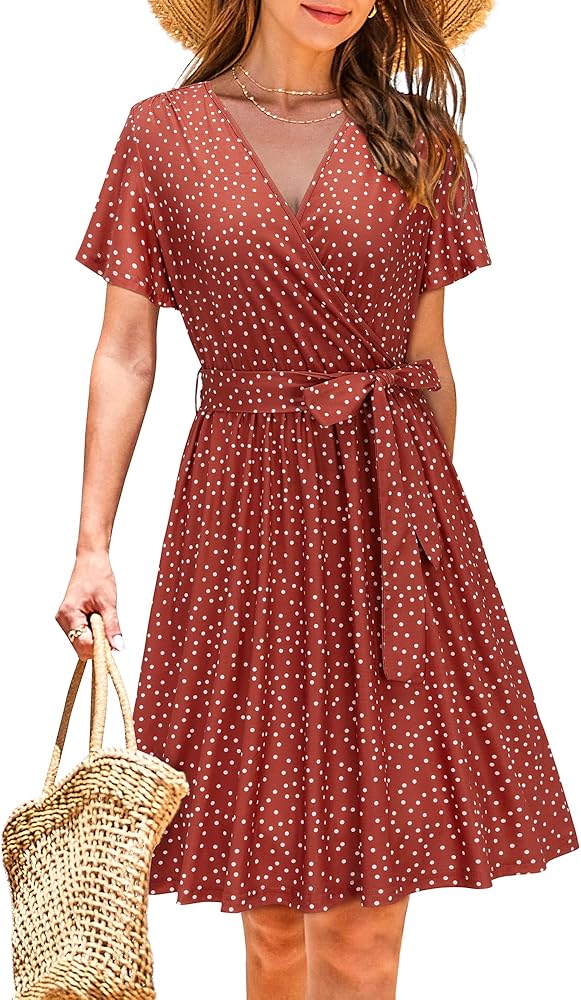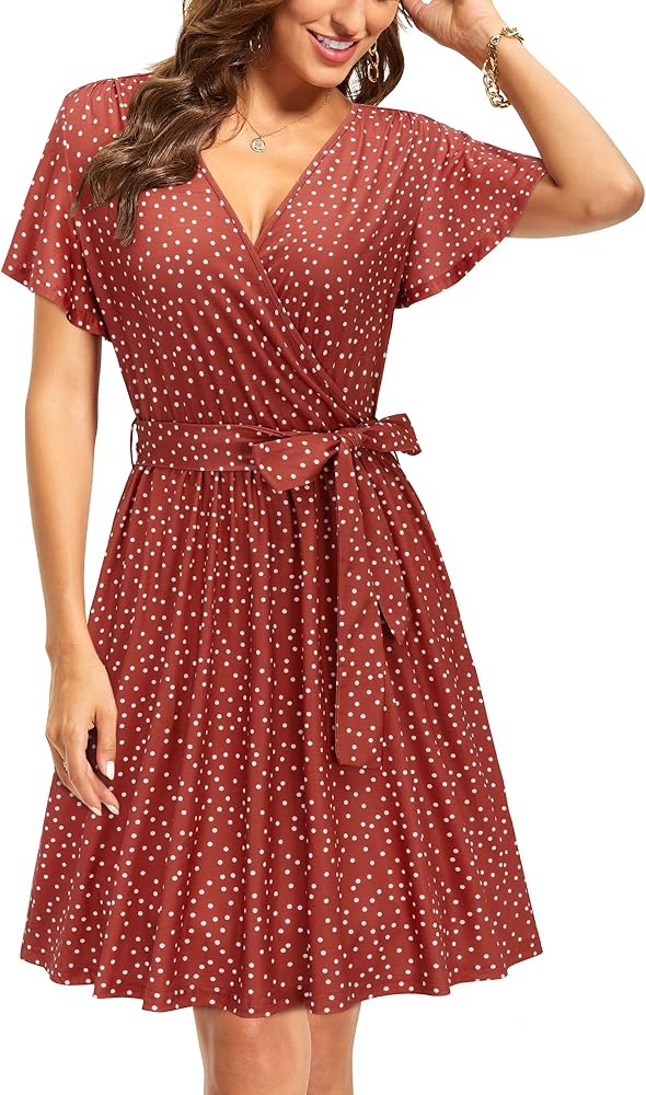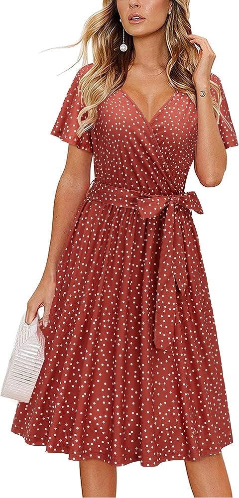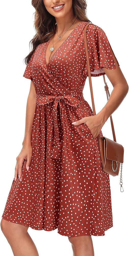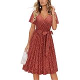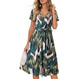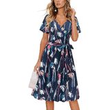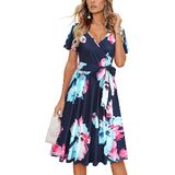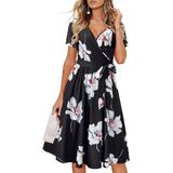 • المميزات - رقبة على شكل حرف V مثيرة، فستان صيفي مزين بالزهور، فستان على شكل ملفوف، أكمام قصيرة، نمط على شكل حرف A، جيوب جانبية، طول الركبة، خصر مرن، حاشية متموجة، فستان بأكمام صيفية، صديق للبشرة، حزام قابل للإزالة، لإظهار منحنيات جسمك المثالية . يتم تعريفه على أنه قطعة أساسية لجميع المناسبات