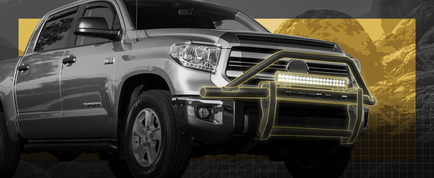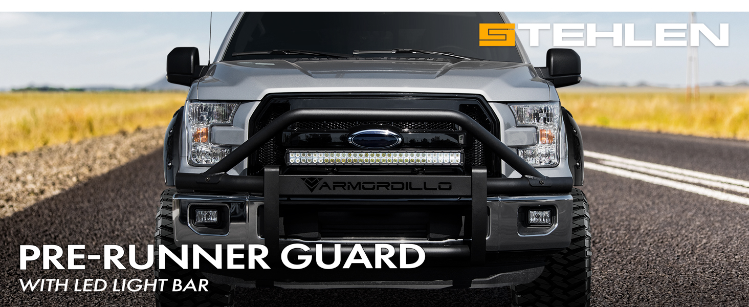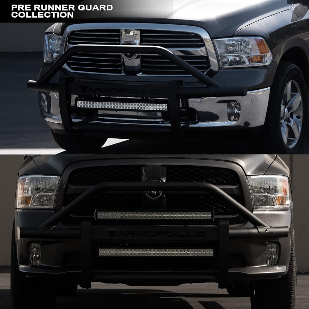 • Grille Guard: تصميم أنبوب مستدير أعلى ، أنبوب قطره 3.5 بوصة مصنوع من الفولاذ الثقيل ، 3 تكوينات محتملة (واقي مصبغة بدون حارس قضبان / مصبغة LED مع شريط LED أعلى حارس شعاع المركز / الشبكة مع شريط LED في أسفل شعاع المركز) ، يوفر Center Cross Beam ثقوبًا مسبقًا للمحفاة المسبقة ، وأضواء Auxiliary (تأتي مع 2 Aux Lighting Plegting: Top / الواجهة الأمامية
