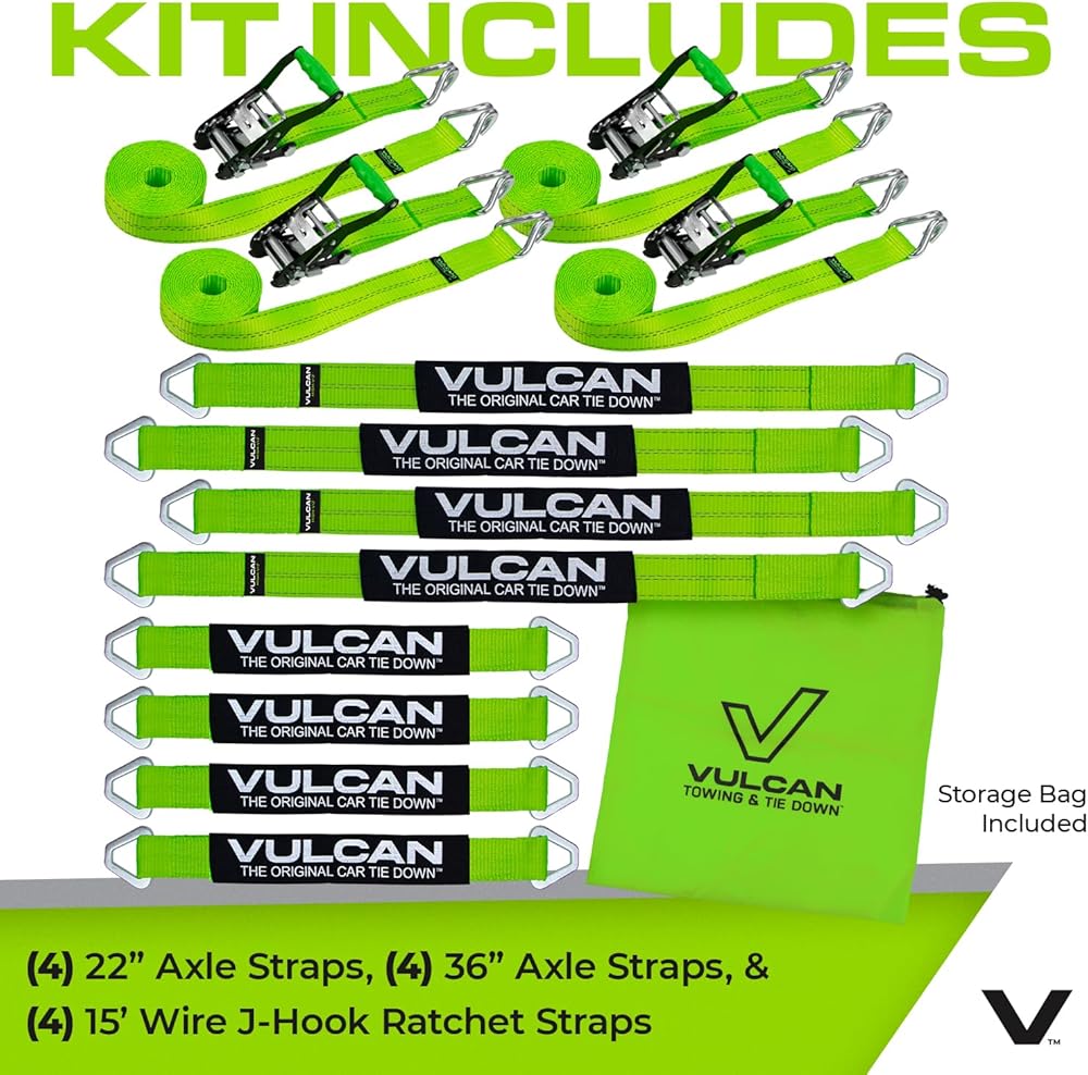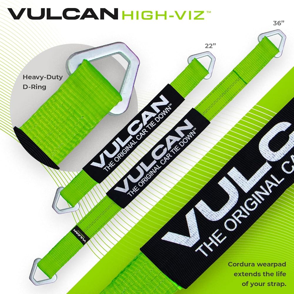 آمن ومتوافق - كل حزام لديه حمولة عمل آمنة تبلغ 3300 رطل ، ويلبي مواصفات DOT و CVSA. بالثقة مع العلم أنك تستخدم حزامًا شاقًا تم تصنيعه بواسطة Vulcan ، وهو الاسم الأكثر ثقة في Tie Downs لأكثر من 50 عامًا.