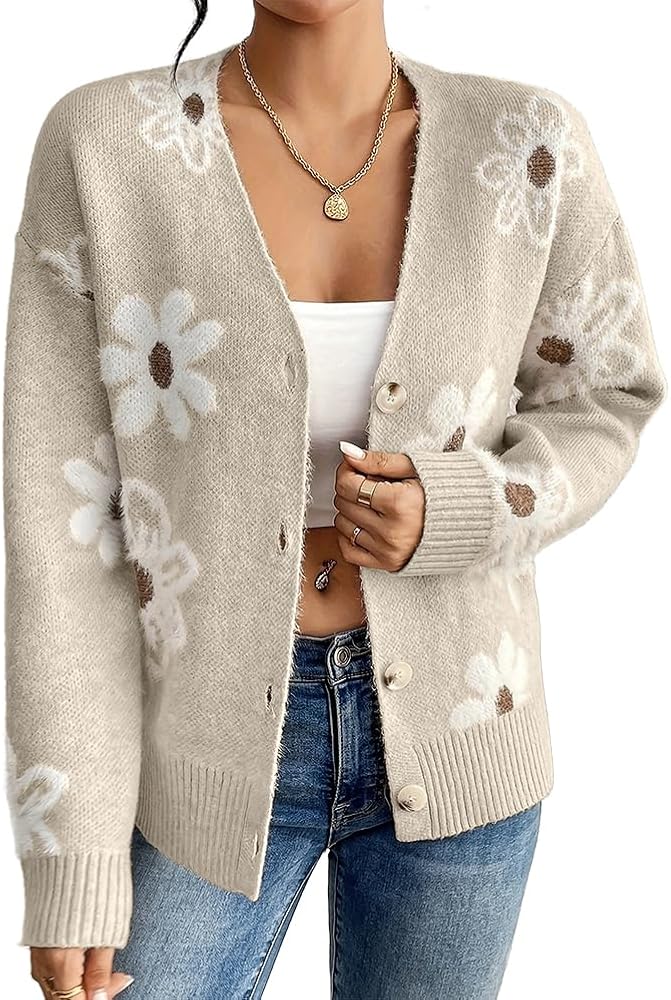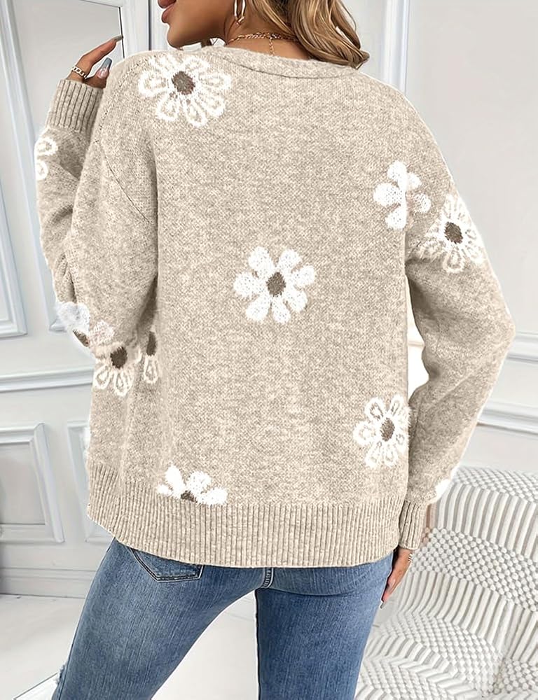 المثل العليا للسيدات ديزي سترة سترة كارديجان خريف الزر الشتاء أسفل سترات زهور الأزهار