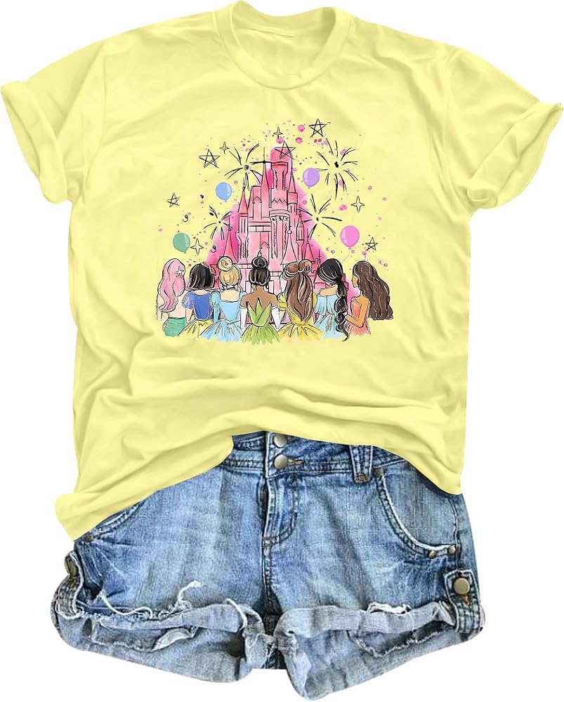 KIDDAD Magical Shirts for Women: Princess Shirt Magic Kingdom T Shirt Funny Family Vacation Tee Casual Holiday Tee Tops