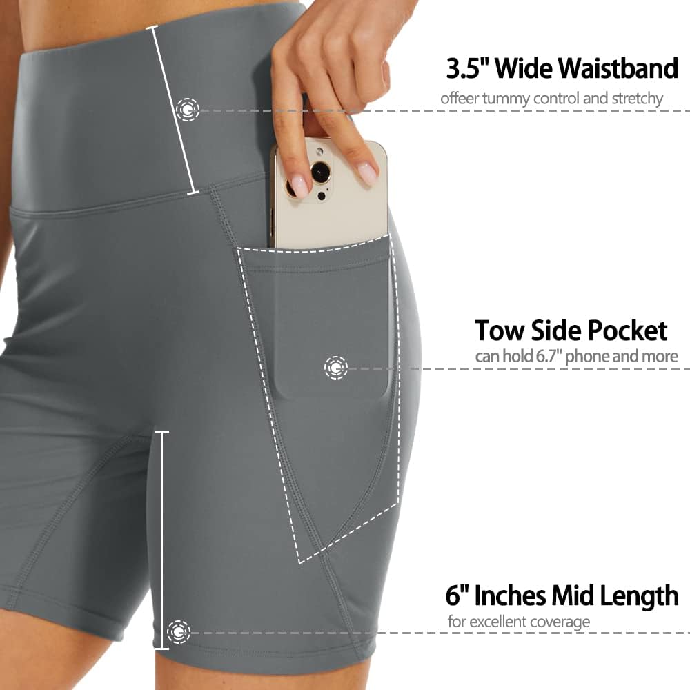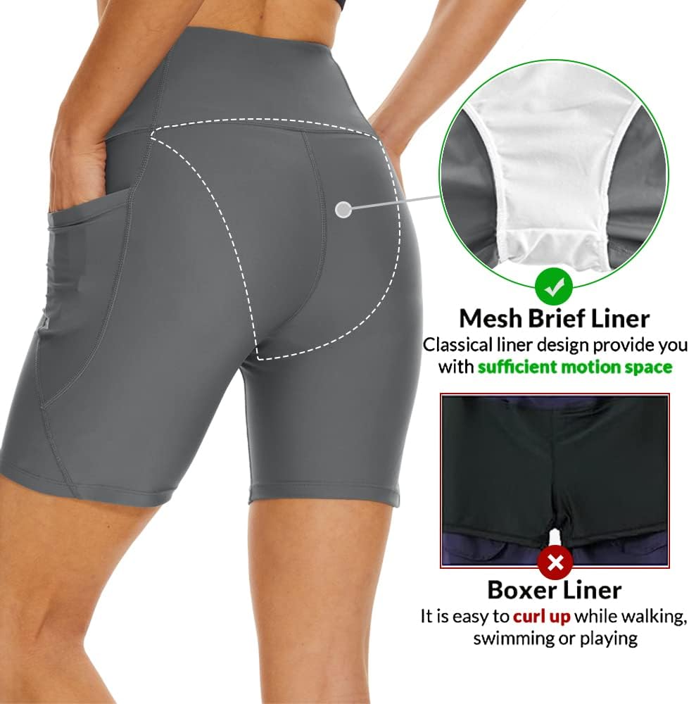 شورت سباحة نسائي مقاس 6 بوصات عالي الخصر للتحكم في البطن، شورت للاستحمام من الأسفل مع بطانة UPF50+