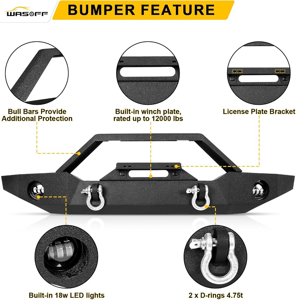 الحماية المحسّنة: قم بترقية المصد الأمامي الخاص بك من أجل Jeep Wrangler JK/JL تم تصميمه للتعامل مع أصعب التحديات على الطرق الوعرة. يضم بارًا قابلاً للفصل ، يوفر حماية أمامية متفوقة ضد العقبات مثل الصخور وفروع الأشجار ومخاطر الممرات الأخرى ، مما يضمن بقاء سيارتك آمنًا ومأمنًا في كل مغامرة