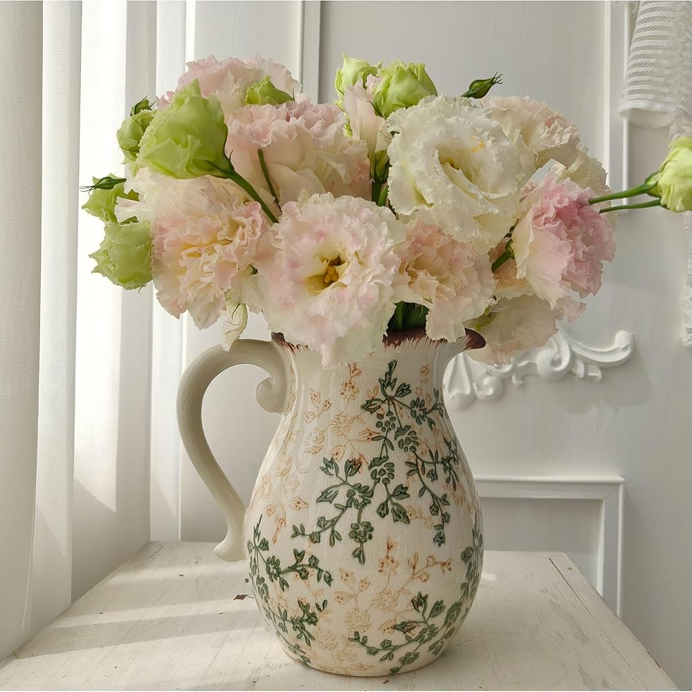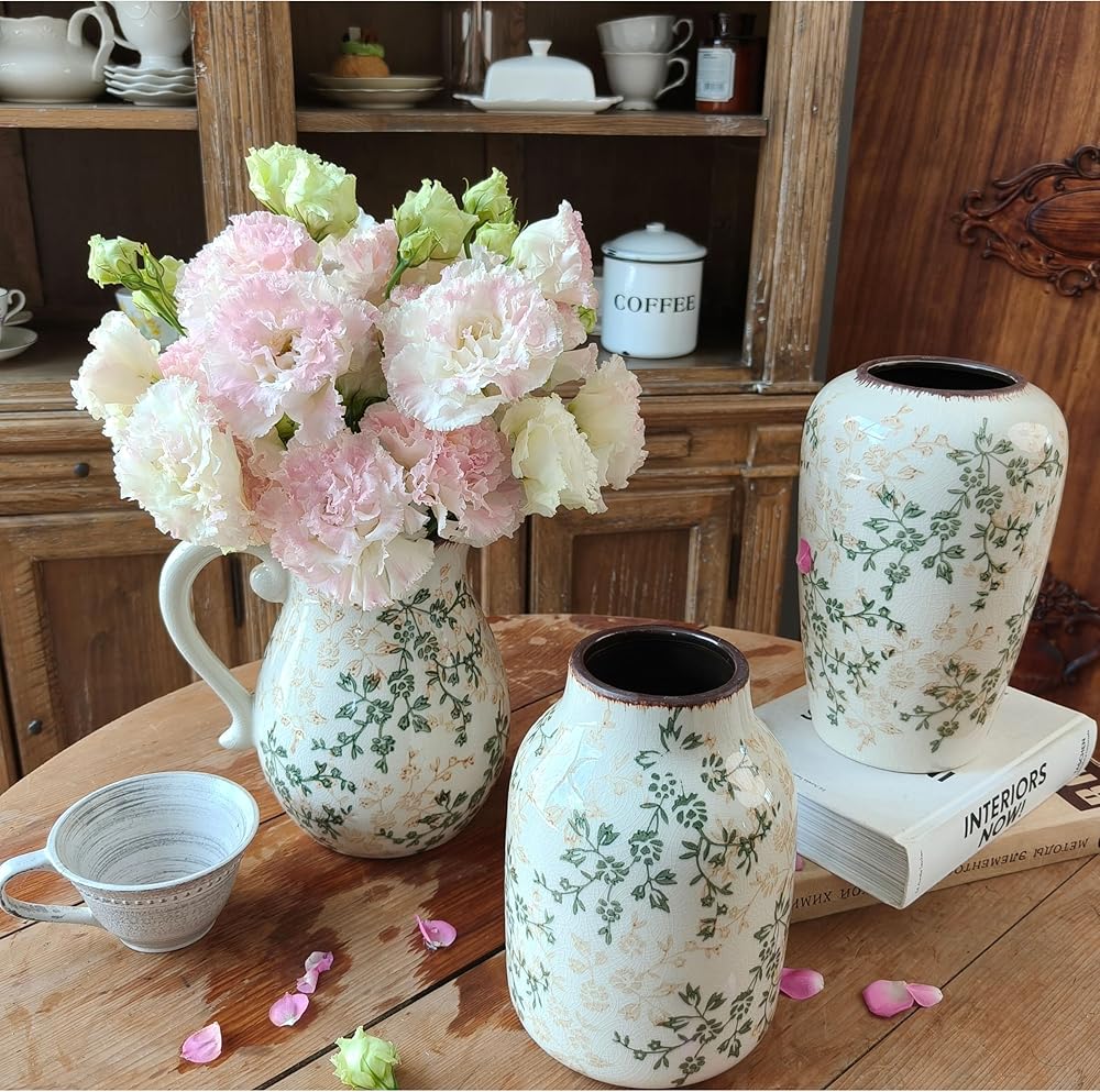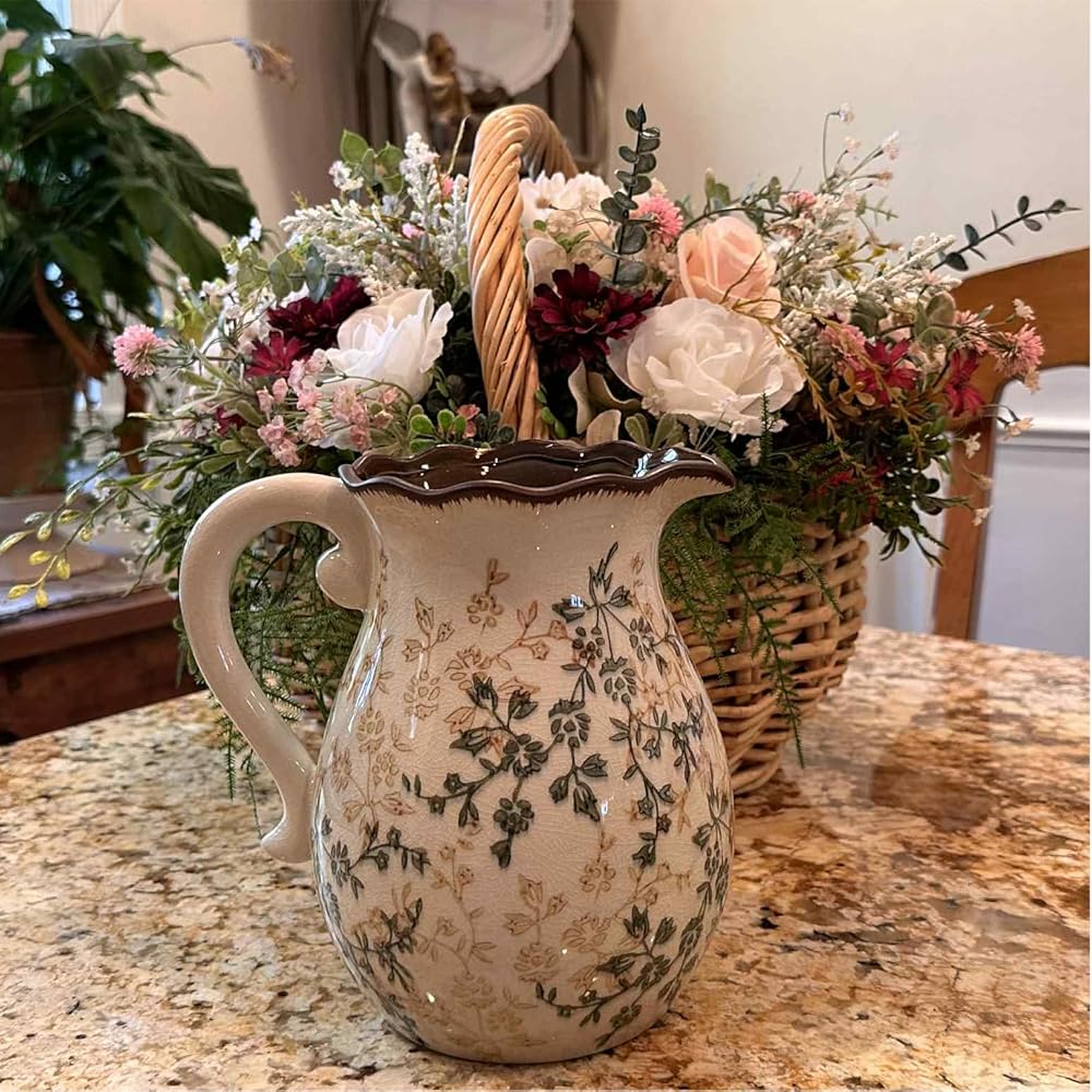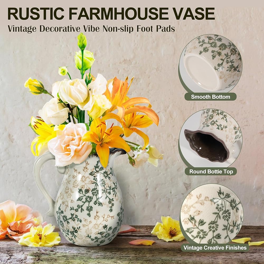 الحرف اليدوية المنفصلة جيدًا: يتميز مزهرية الخزف الزهرية بلوحة ألوان خضراء وبيج جذابة مع تشطيب Chinoiserie المميز. إن المزهرية الريفية هي التصميم الداخلي المقاوم للماء والتصميم اللامع على كل من الوظيفة والجاذبية الجمالية. إن مزهرية المزرعة سهلة التنظيف وستكون قطعة زخرفية في الأناقة الخالدة.