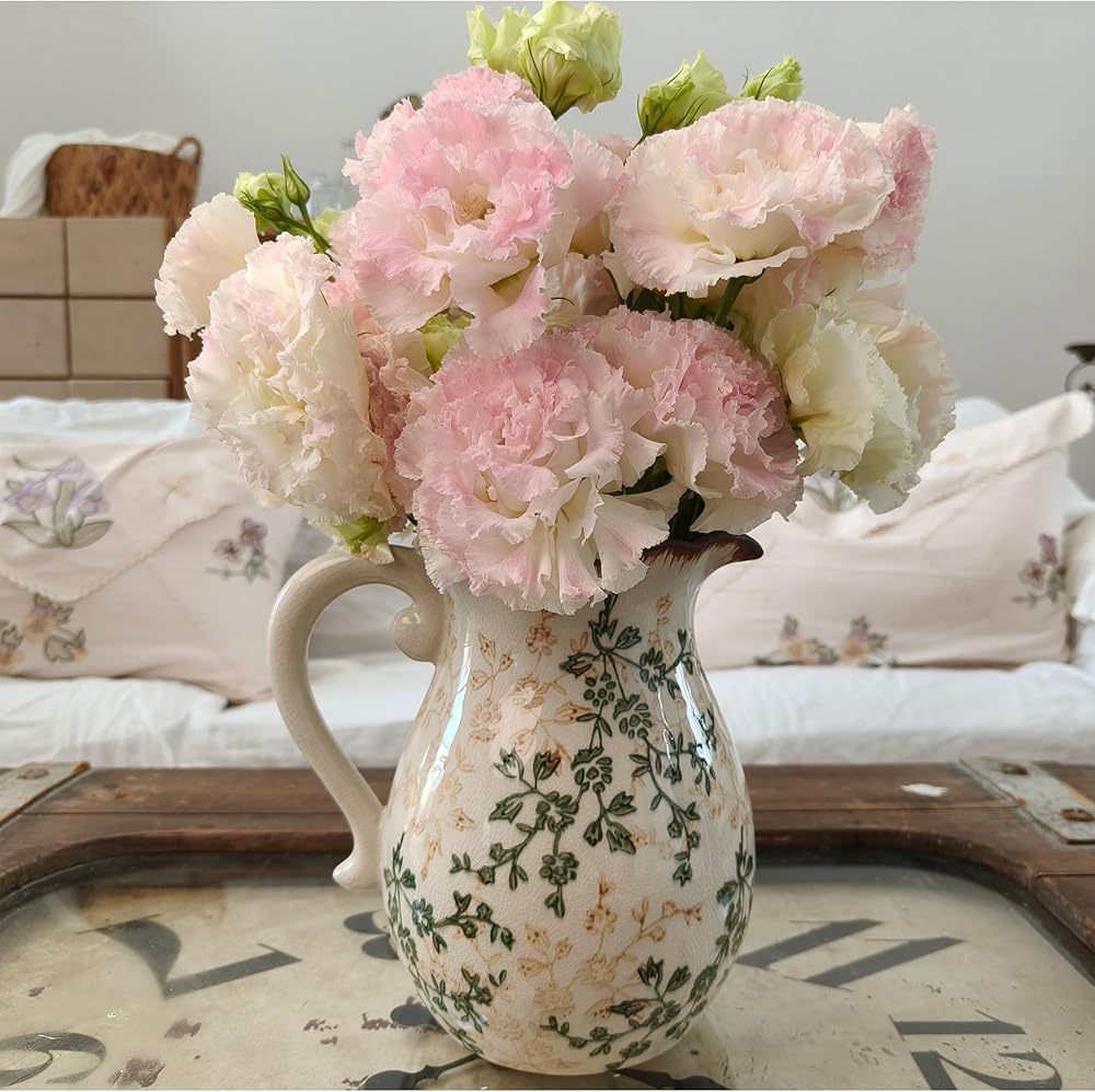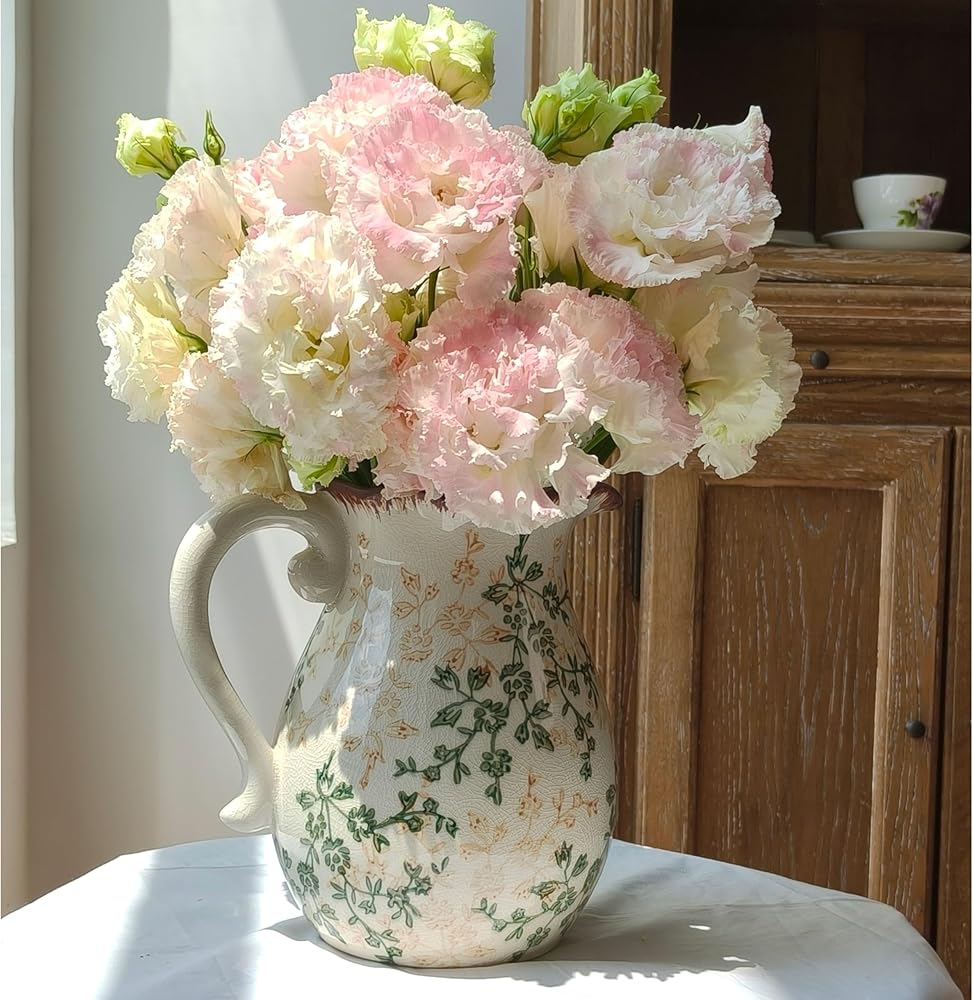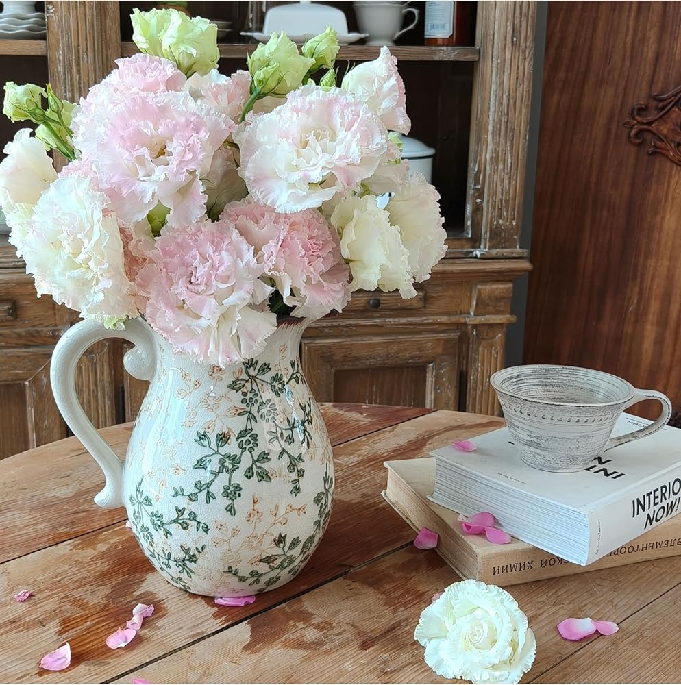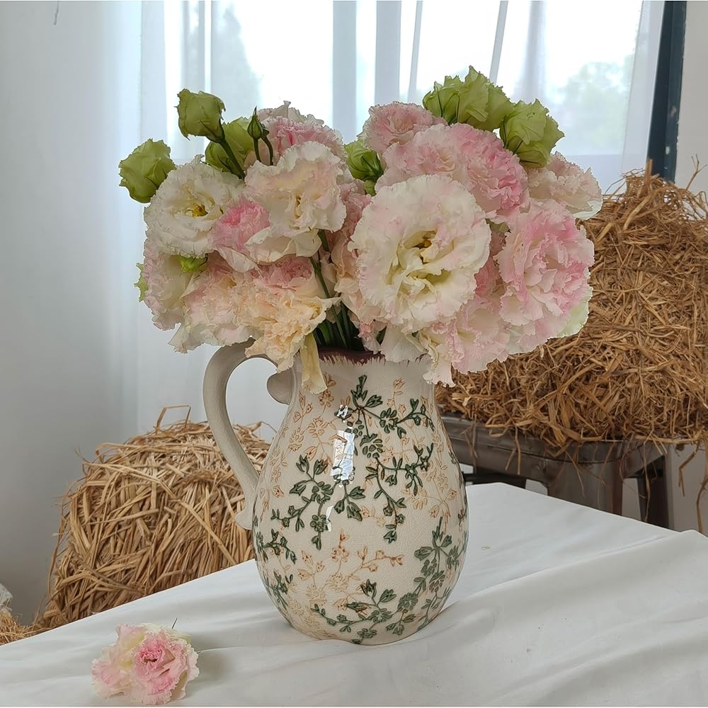الحرف اليدوية المنفصلة جيدًا: يتميز مزهرية الخزف الزهرية بلوحة ألوان خضراء وبيج جذابة مع تشطيب Chinoiserie المميز. إن المزهرية الريفية هي التصميم الداخلي المقاوم للماء والتصميم اللامع على كل من الوظيفة والجاذبية الجمالية. إن مزهرية المزرعة سهلة التنظيف وستكون قطعة زخرفية في الأناقة الخالدة.